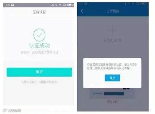 6. 完成“实时身份信息认证”后点击“确定”,上传身份证照片: