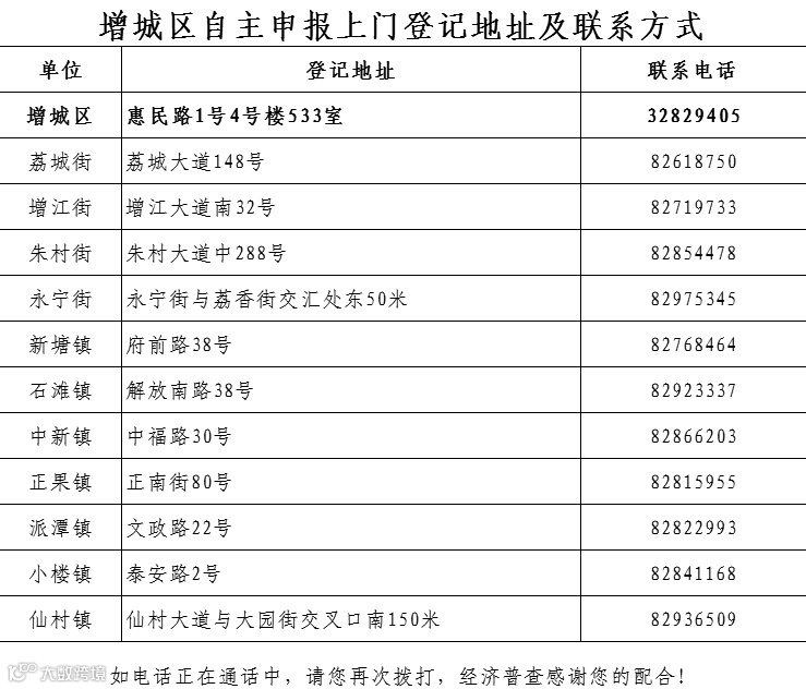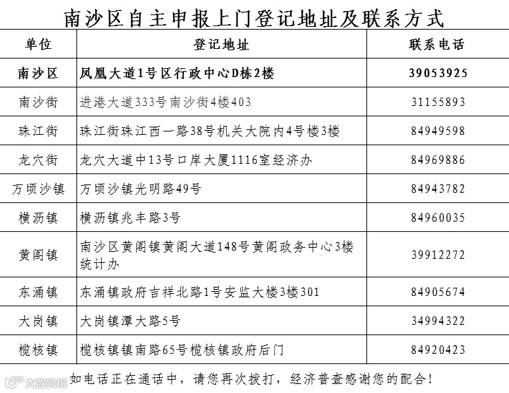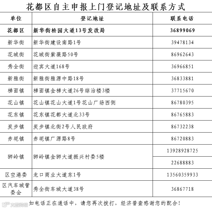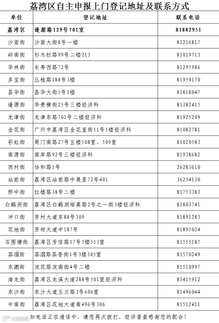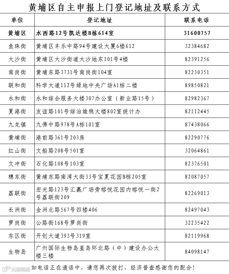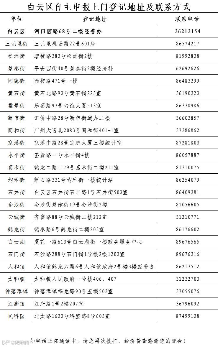 导读:广州市各区自主申报上门登记地址及联系方式,请抓紧办理