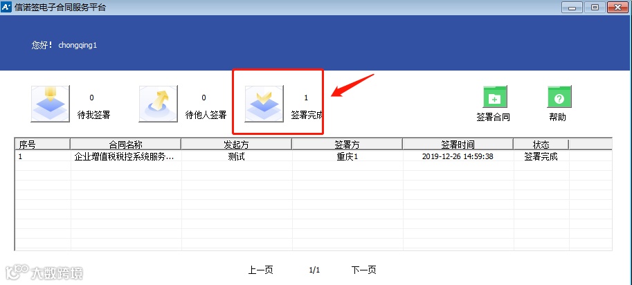 在主页面点击【签署完成】,即可在列表中查看刚刚签署的合同;