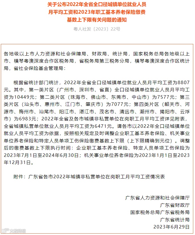 基于2022年全省全口径城镇单位就业人员月平均工资为8807元,按照社平工资下限60%上限300%,基本养老保险上调至最低缴费基数5284元和最高缴费基数26421元。