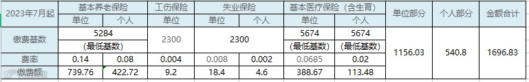 以2300为基数,上涨153.12元,合计1696.83元/月