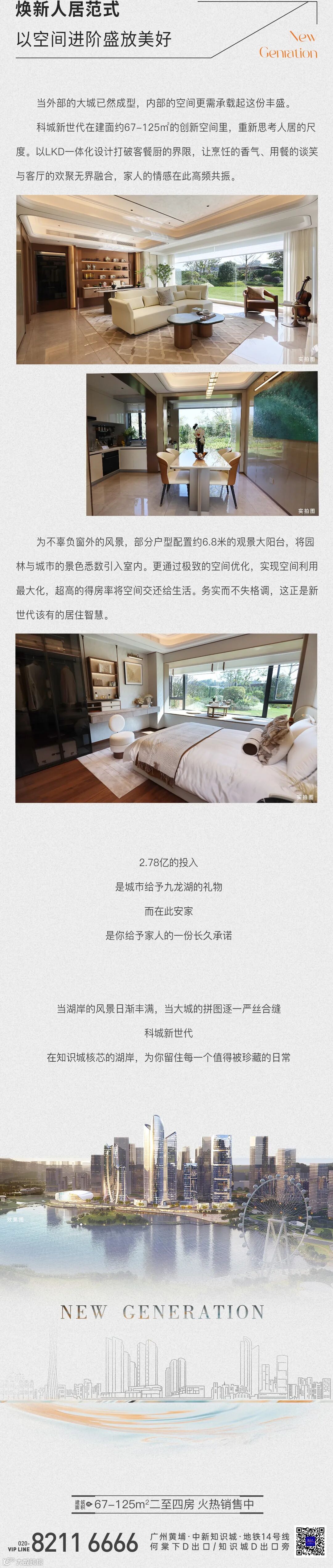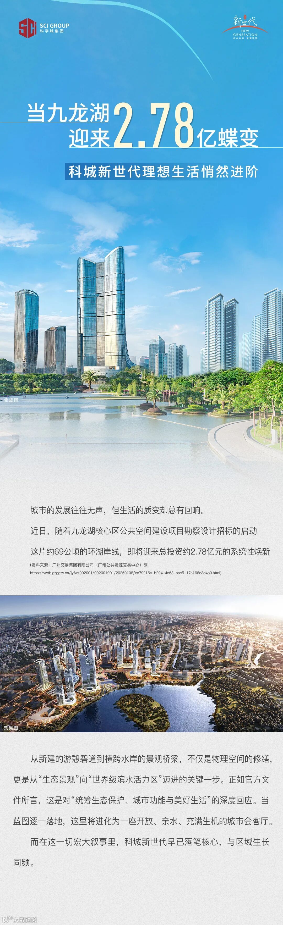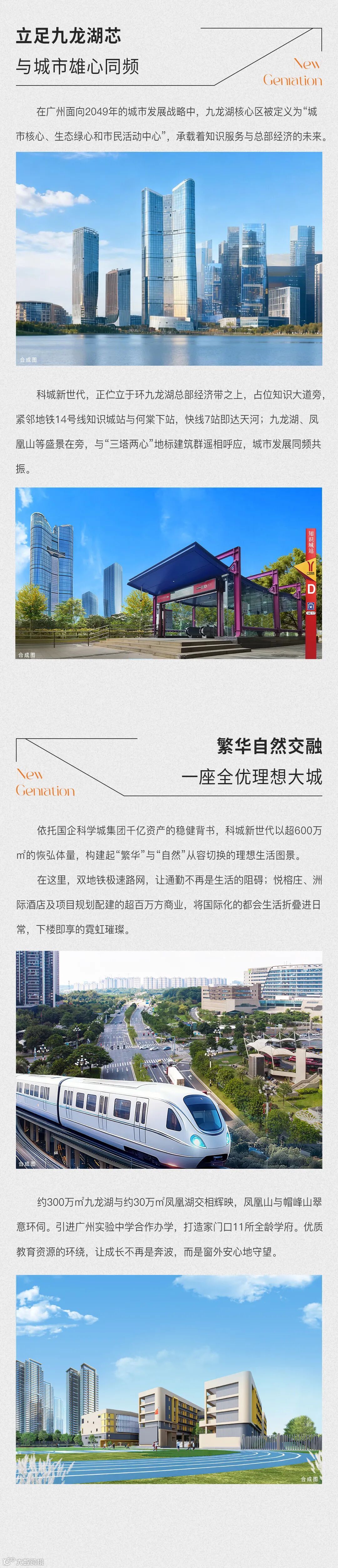 免责声明:1、本广告内容仅为要约邀请,所涉及的图文及数据等相关内容仅供参考,不构成开发商承诺的任何交付标准,买卖双方的权利义务最终以双方签订的合同为准;资料中涉及的项目周边环境景观、公建配套、道路交通、商业业态、文化教育及其他市政设施信息,均采集自截至本资料制作之日政府官方媒体及相关网站的公开信息,其中九龙湖控规已取消金融塔,其他具体规划、学位安排等均以规划部门及相关政府部门最终批复及实际建设为准。本宣传资料旨在提供项目景观视野参考,未来相关部门对规划用地的实际建设存在不确定性,视野可能会受到一定遮挡,本资料不视为对视野做出承诺。开发商在法律法规允许的范围内保留随时对本资料修改的权利及最终解释权,敬请留意最新资料。2、本宣传资料对周边环境、政府规划、商业配套、教育配套、交通、商业设施开办等的介绍仅为提供相关信息,具体以政府最终批文为准,开发商不对此作任何承诺。实际入学政策以及学校招生范围方式等均以政府教育部门发布为准。开发商:广州科城何棠置业发展有限公司,推广案名:科城·新世代,首期地块标准地名:新灏花园,穗房预(网)字第20240307号/穗房预(网)字第20240308号/穗房预(网)字第20240309号,穗房预(网)字第20240383号/穗房预(网)字第20240384号/穗房预(网)字第20240385号;制作日期2026年1月。