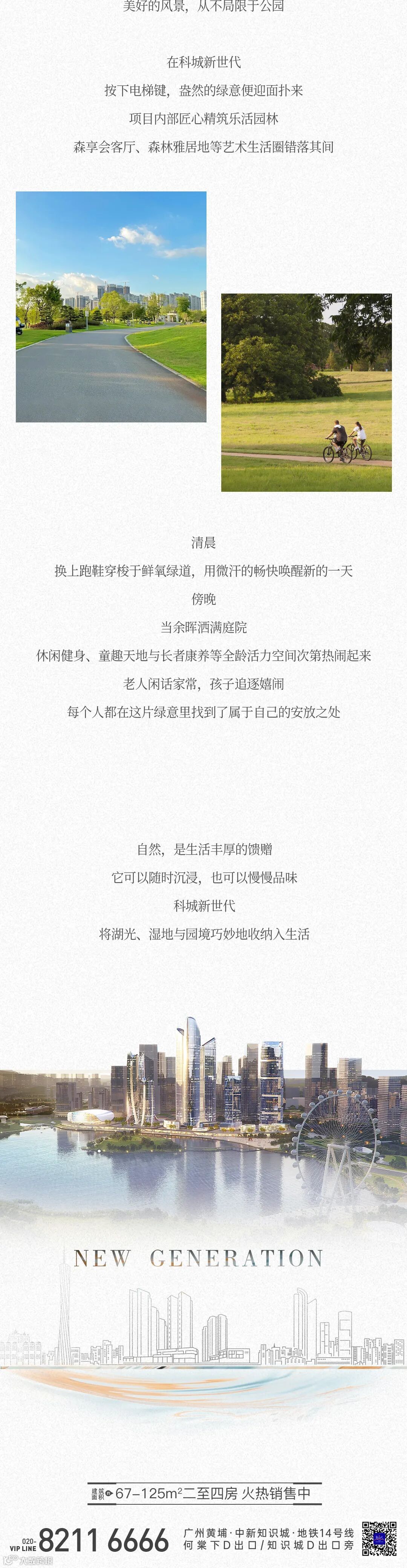 科城新世代 科城新世代是由科学城集团倾力打造的超600万㎡全优综合大城。项目位于广州市黄埔区中新知识城环九龙湖总部经济带,地铁14号线知识城站D出口旁,周边九龙湖、凤凰山等两湖两山环绕,首发产品约67-119㎡二至四房,总价仅100万起。