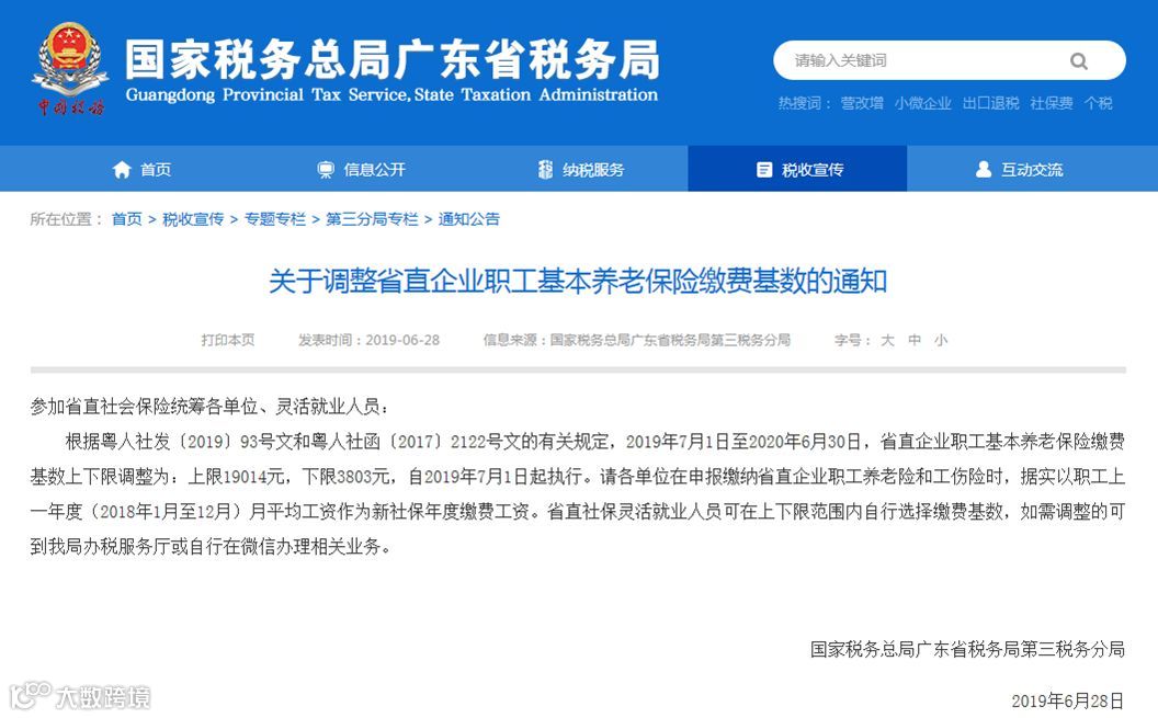 2019年社保缴费基数调整详细表