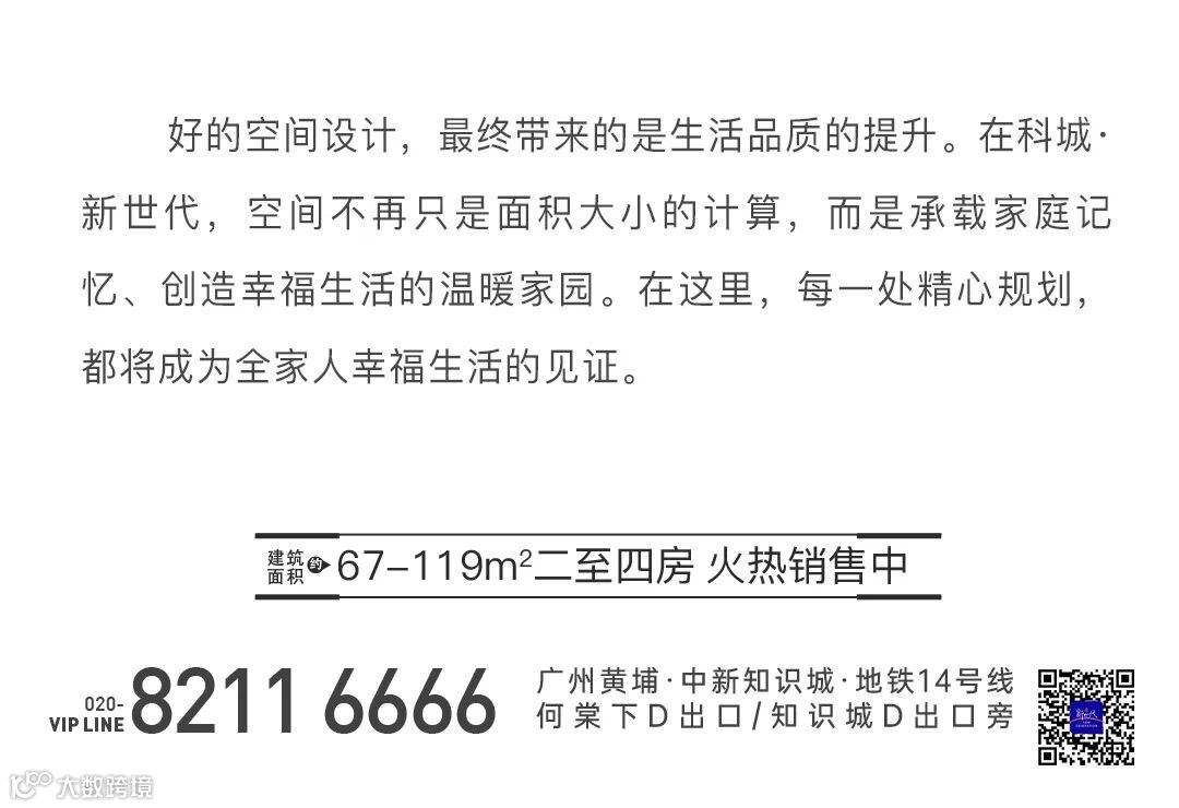 免责声明:1、本广告内容仅为要约邀请,所涉及的图文及数据等相关内容仅供参考,不构成开发商承诺的任何交付标准,买卖双方的权利义务最终以双方签订的合同为准;资料中涉及的项目周边环境景观、公建配套、道路交通、商业业态、文化教育及其他市政设施信息,均采集自截至本资料制作之日政府官方媒体及相关网站的公开信息,其中九龙湖控规已取消金融塔,其他具体规划、学位安排等均以规划部门及相关政府部门最终批复及实际建设为准。本宣传资料旨在提供项目景观视野参考,未来相关部门对规划用地的实际建设存在不确定性,视野可能会受到一定遮挡,本资料不视为对视野做出承诺。开发商在法律法规允许的范围内保留随时对本资料修改的权利及最终解释权,敬请留意最新资料。2、本宣传资料对周边环境、政府规划、商业配套、教育配套、交通、商业设施开办等的介绍仅为提供相关信息,具体以政府最终批文为准,开发商不对此作任何承诺。实际入学政策以及学校招生范围方式等均以政府教育部门发布为准。开发商:广州科城何棠置业发展有限公司,推广案名:科城·新世代,首期地块标准地名:新灏花园,穗房预(网)字第20240307号/穗房预(网)字第20240308号/穗房预(网)字第20240309号,穗房预(网)字第20240383号/穗房预(网)字第20240384号/穗房预(网)字第20240385号;制作日期2025年7月。