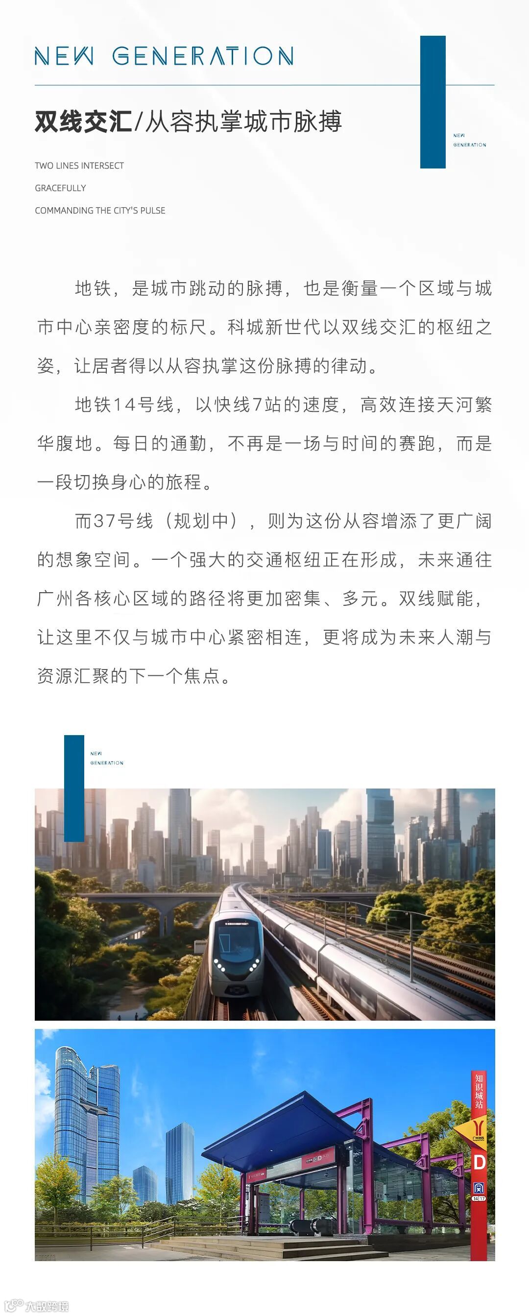 免责声明:1、本广告内容仅为要约邀请,所涉及的图文及数据等相关内容仅供参考,不构成开发商承诺的任何交付标准,买卖双方的权利义务最终以双方签订的合同为准;资料中涉及的项目周边环境景观、公建配套、道路交通、商业业态、文化教育及其他市政设施信息,均采集自截至本资料制作之日政府官方媒体及相关网站的公开信息,其中九龙湖控规已取消金融塔,其他具体规划、学位安排等均以规划部门及相关政府部门最终批复及实际建设为准。本宣传资料旨在提供项目景观视野参考,未来相关部门对规划用地的实际建设存在不确定性,视野可能会受到一定遮挡,本资料不视为对视野做出承诺。开发商在法律法规允许的范围内保留随时对本资料修改的权利及最终解释权,敬请留意最新资料。2、本宣传资料对周边环境、政府规划、商业配套、教育配套、交通、商业设施开办等的介绍仅为提供相关信息,具体以政府最终批文为准,开发商不对此作任何承诺。实际入学政策以及学校招生范围方式等均以政府教育部门发布为准。开发商:广州科城何棠置业发展有限公司,推广案名:科城·新世代,首期地块标准地名:新灏花园,穗房预(网)字第20240307号/穗房预(网)字第20240308号/穗房预(网)字第20240309号,穗房预(网)字第20240383号/穗房预(网)字第20240384号/穗房预(网)字第20240385号;制作日期2025年9月。