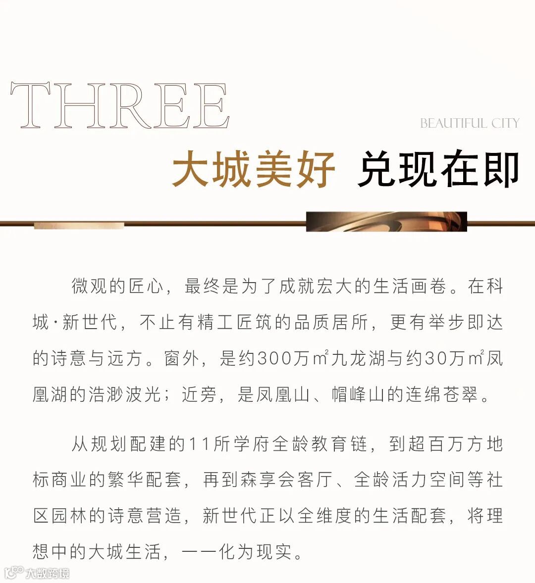 免责声明:1、本广告内容仅为要约邀请,所涉及的图文及数据等相关内容仅供参考,不构成开发商承诺的任何交付标准,买卖双方的权利义务最终以双方签订的合同为准;资料中涉及的项目周边环境景观、公建配套、道路交通、商业业态、文化教育及其他市政设施信息,均采集自截至本资料制作之日政府官方媒体及相关网站的公开信息,其中九龙湖控规已取消金融塔,其他具体规划、学位安排等均以规划部门及相关政府部门最终批复及实际建设为准。本宣传资料旨在提供项目景观视野参考,未来相关部门对规划用地的实际建设存在不确定性,视野可能会受到一定遮挡,本资料不视为对视野做出承诺。开发商在法律法规允许的范围内保留随时对本资料修改的权利及最终解释权,敬请留意最新资料。2、本宣传资料对周边环境、政府规划、商业配套、教育配套、交通、商业设施开办等的介绍仅为提供相关信息,具体以政府最终批文为准,开发商不对此作任何承诺。实际入学政策以及学校招生范围方式等均以政府教育部门发布为准。开发商:广州科城何棠置业发展有限公司,推广案名:科城·新世代,首期地块标准地名:新灏花园,穗房预(网)字第20240307号/穗房预(网)字第20240308号/穗房预(网)字第20240309号,穗房预(网)字第20240383号/穗房预(网)字第20240384号/穗房预(网)字第20240385号;制作日期2025年7月。