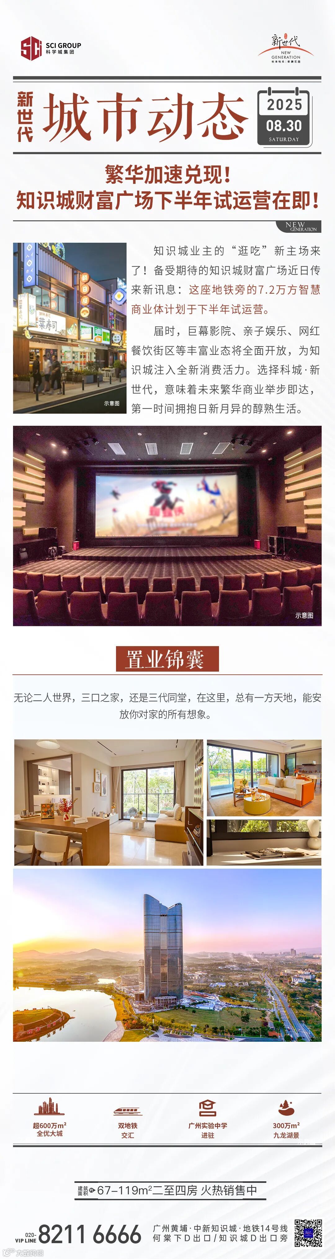 图片免责声明:1、本广告内容仅为要约邀请,所涉及的图文及数据等相关内容仅供参考,不构成开发商承诺的任何交付标准,买卖双方的权利义务最终以双方签订的合同为准;资料中涉及的项目周边环境景观、公建配套、道路交通、商业业态、文化教育及其他市政设施信息,均采集自截至本资料制作之日政府官方媒体及相关网站的公开信息,其中九龙湖控规已取消金融塔,其他具体规划、学位安排等均以规划部门及相关政府部门最终批复及实际建设为准。本宣传资料旨在提供项目景观视野参考,未来相关部门对规划用地的实际建设存在不确定性,视野可能会受到一定遮挡,本资料不视为对视野做出承诺。开发商在法律法规允许的范围内保留随时对本资料修改的权利及最终解释权,敬请留意最新资料。2、本宣传资料对周边环境、政府规划、商业配套、教育配套、交通、商业设施开办等的介绍仅为提供相关信息,具体以政府最终批文为准,开发商不对此作任何承诺。实际入学政策以及学校招生范围方式等均以政府教育部门发布为准。开发商:广州科城何棠置业发展有限公司,推广案名:科城·新世代,首期地块标准地名:新灏花园,穗房预(网)字第20240307号/穗房预(网)字第20240308号/穗房预(网)字第20240309号,穗房预(网)字第20240383号/穗房预(网)字第20240384号/穗房预(网)字第20240385号;制作日期2025年8月。