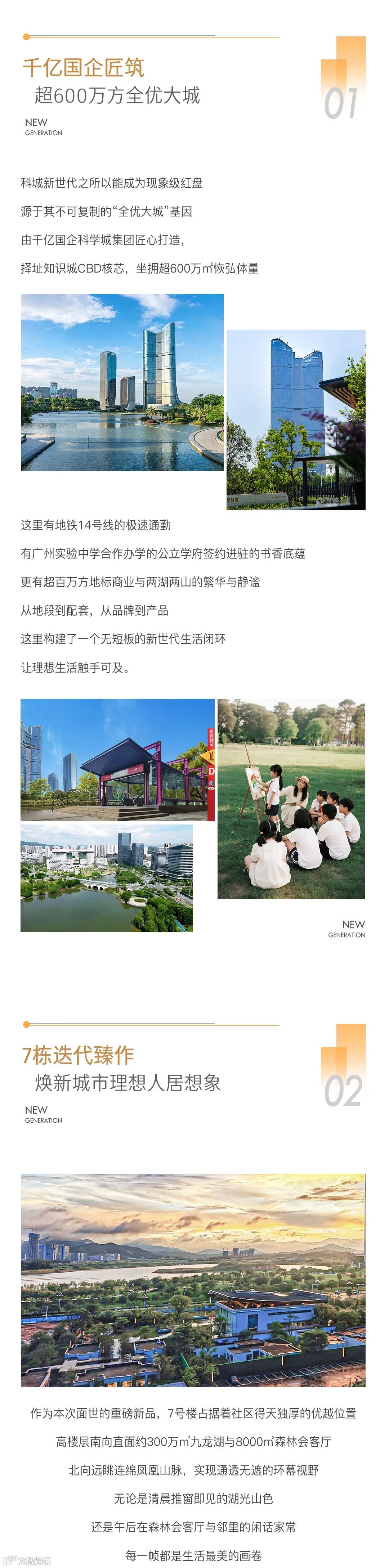 免责声明:1、本广告内容仅为要约邀请,所涉及的图文及数据等相关内容仅供参考,不构成开发商承诺的任何交付标准,买卖双方的权利义务最终以双方签订的合同为准;资料中涉及的项目周边环境景观、公建配套、道路交通、商业业态、文化教育及其他市政设施信息,均采集自截至本资料制作之日政府官方媒体及相关网站的公开信息,其中九龙湖控规已取消金融塔,其他具体规划、学位安排等均以规划部门及相关政府部门最终批复及实际建设为准。本宣传资料旨在提供项目景观视野参考,未来相关部门对规划用地的实际建设存在不确定性,视野可能会受到一定遮挡,本资料不视为对视野做出承诺。开发商在法律法规允许的范围内保留随时对本资料修改的权利及最终解释权,敬请留意最新资料。2、本宣传资料对周边环境、政府规划、商业配套、教育配套、交通、商业设施开办等的介绍仅为提供相关信息,具体以政府最终批文为准,开发商不对此作任何承诺。实际入学政策以及学校招生范围方式等均以政府教育部门发布为准。开发商:广州科城何棠置业发展有限公司,推广案名:科城·新世代,首期地块标准地名:新灏花园,穗房预(网)字第20240307号/穗房预(网)字第20240308号/穗房预(网)字第20240309号,穗房预(网)字第20240383号/穗房预(网)字第20240384号/穗房预(网)字第20240385号;制作日期2025年12月。
