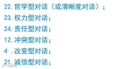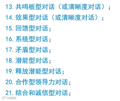 很显然,在某些专门领域(团队教练,高管教练,政治教练)的教练对话里,也包含核心教练对话(前面提及的首要6个教练对话),以及其他对话。最关键的是,你要知道不同的对话种类,以及知道要做什么、如何使用某个教练对话去做有效教练,这就是每个种类教练对话所带来的作用,为了提供你了解整个教练操作。