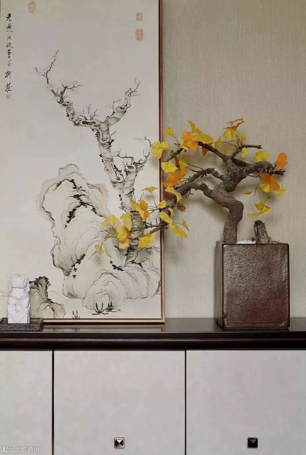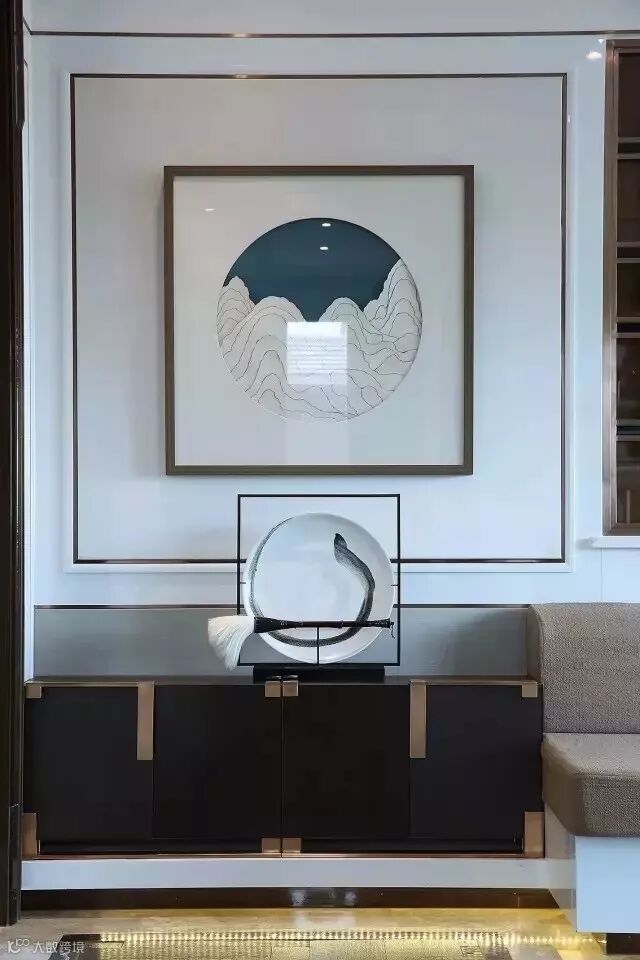 相比大面积的背景墙,小巧简单富有韵味的挂画,在家装环节里也会起到与众不同的视觉效果,或清雅或禅意的色调丝丝点缀室内空间,提升了家居的装饰品味,彰显出高雅生活情趣,从而成为整个空间的点睛之笔。