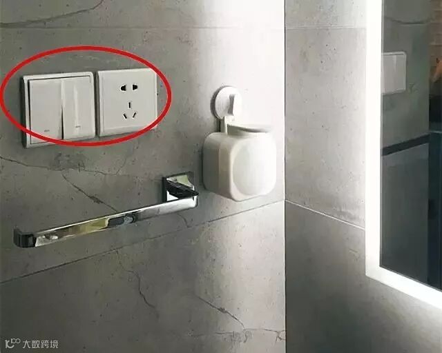 化妆镜旁边的插座和开关,用于电吹风、美容仪。