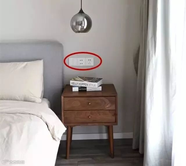 床头的双控开关,方便在睡前关灯;设置一组插座,方便台灯、手机充电等的使用。