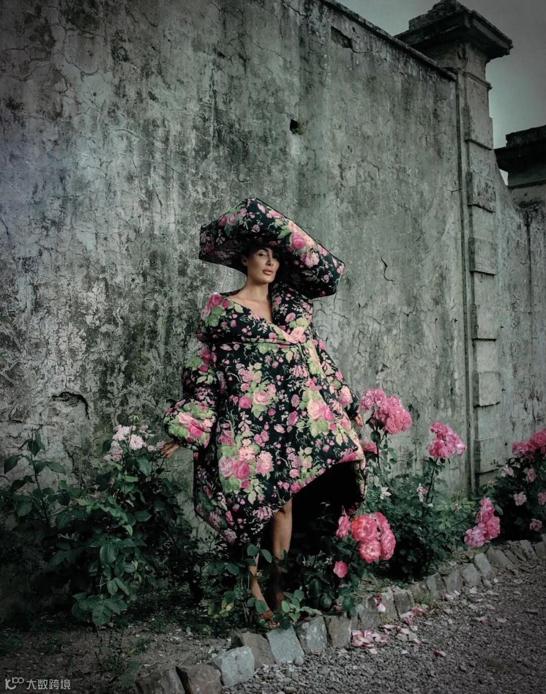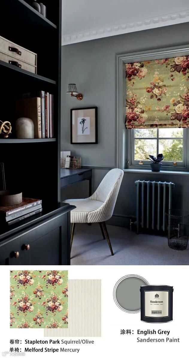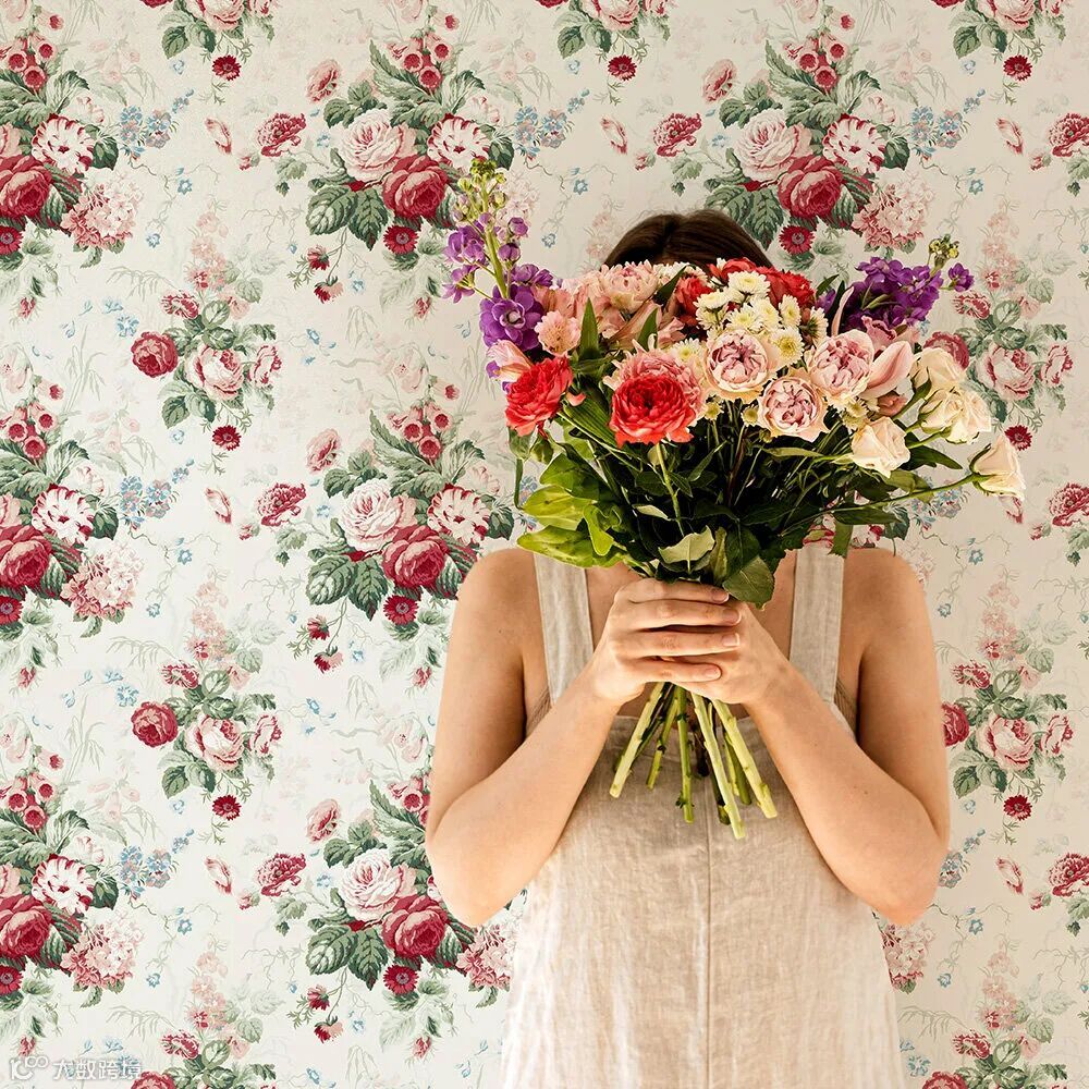 1990年代由Pat Etheridge创作的经典图案 Stapleton Park ——以玫瑰、毛地黄与绣球花束为特色。Moschino在设计中加入隐藏于花朵间的俏皮人脸,赋予其奇幻色彩。Sanderson品牌对此评价道:‘这一图案已成功跻身时尚界的头排席位。