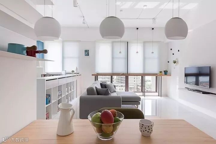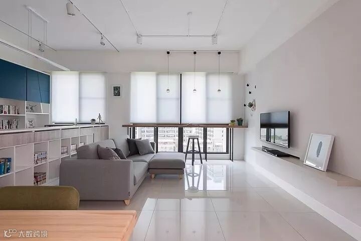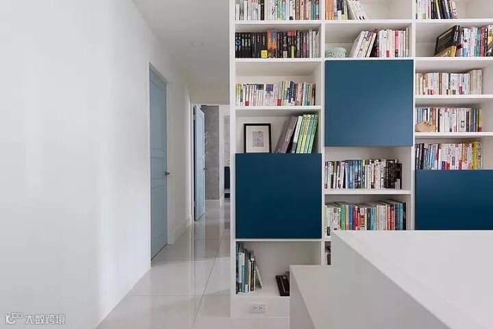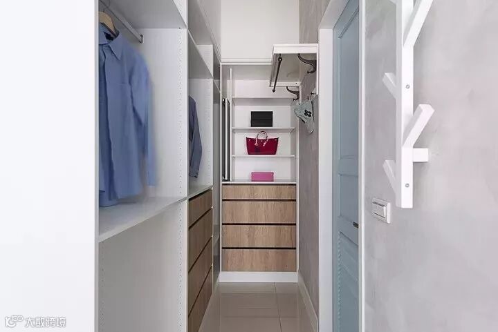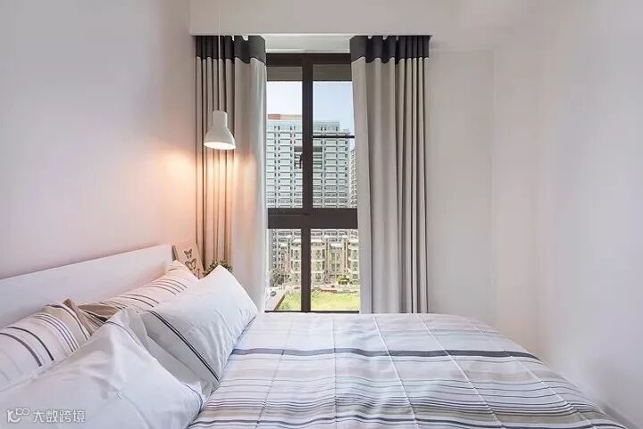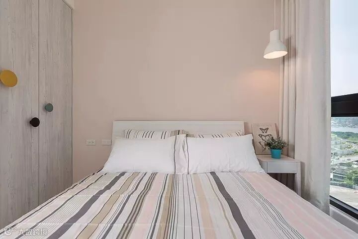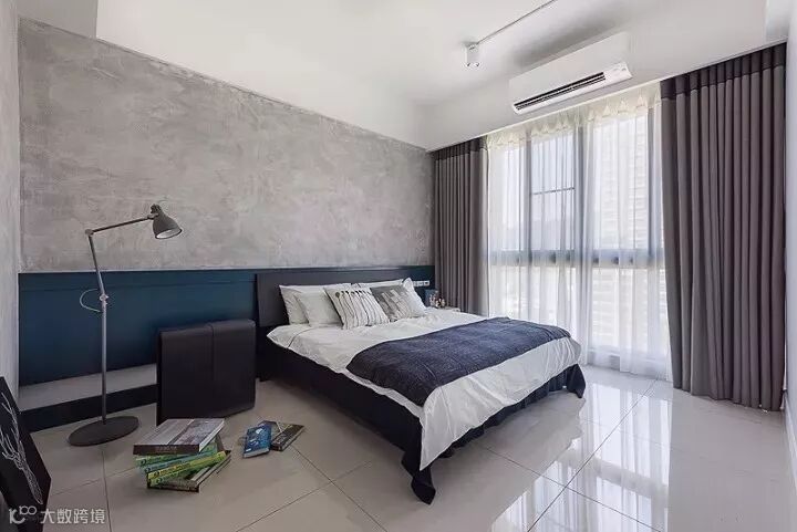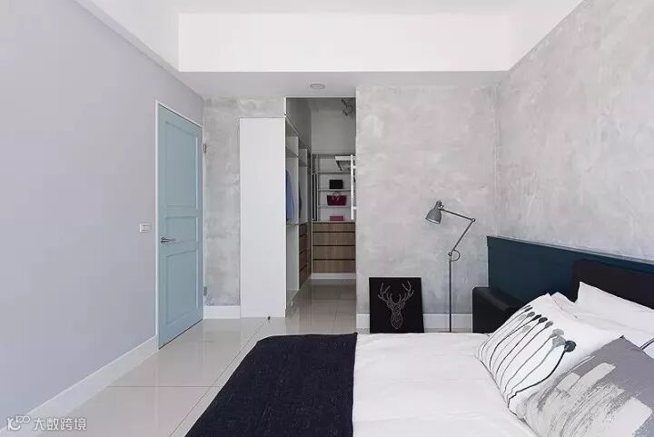 主卧室墙面区采用了灰白双色的硅藻土平批工法
