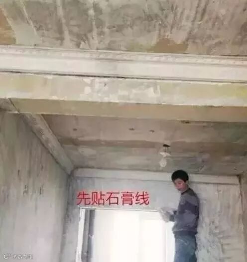 正确顺序应该是先贴石膏线。