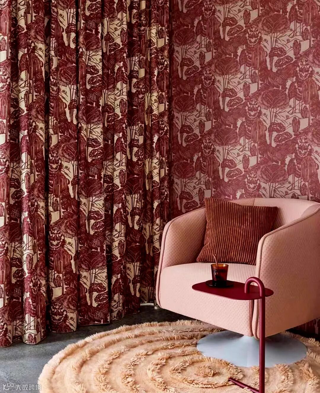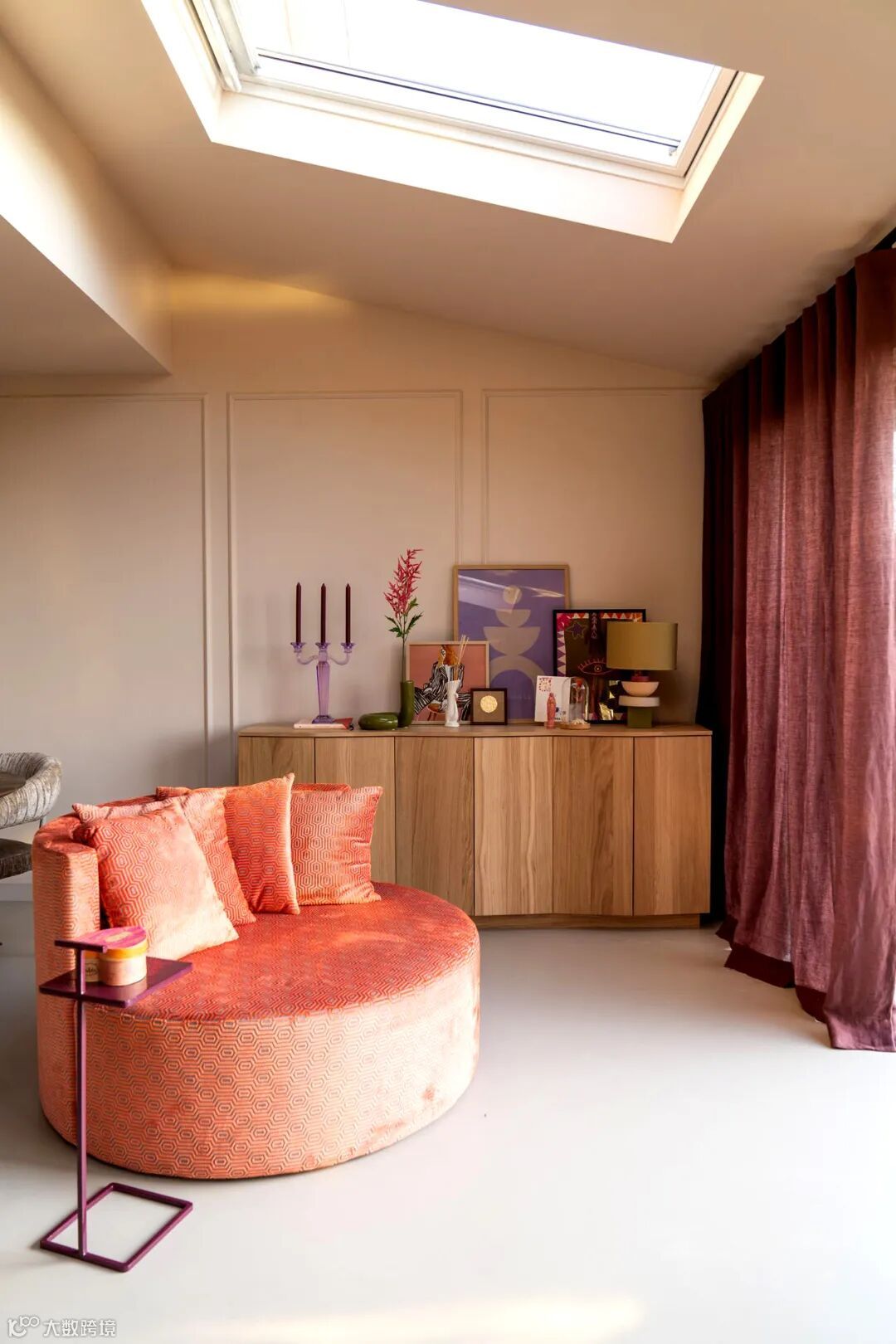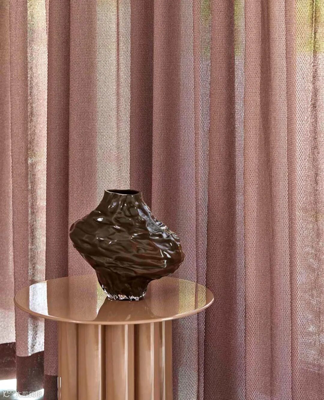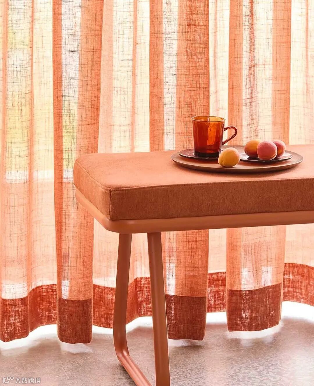 深紫红色在这个内部也很突出。这种阴影出现在窗框、楼梯和门上。劳拉正在寻找与框架完美匹配的窗帘面料。她选择了美丽的亚麻布Mount窗纱系列,项目编号7450-26,让它“亲密”的与地板接触(让它慷慨地掉到地上),这通常是亚麻窗帘面料的推荐,因为它们的长度会因温度波动而变化。结果如何呢?真是一个完美的整体搭配方案。