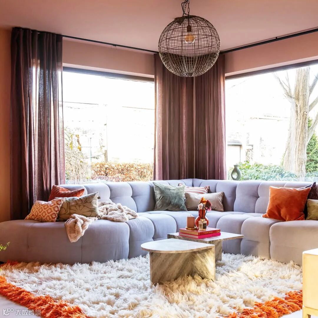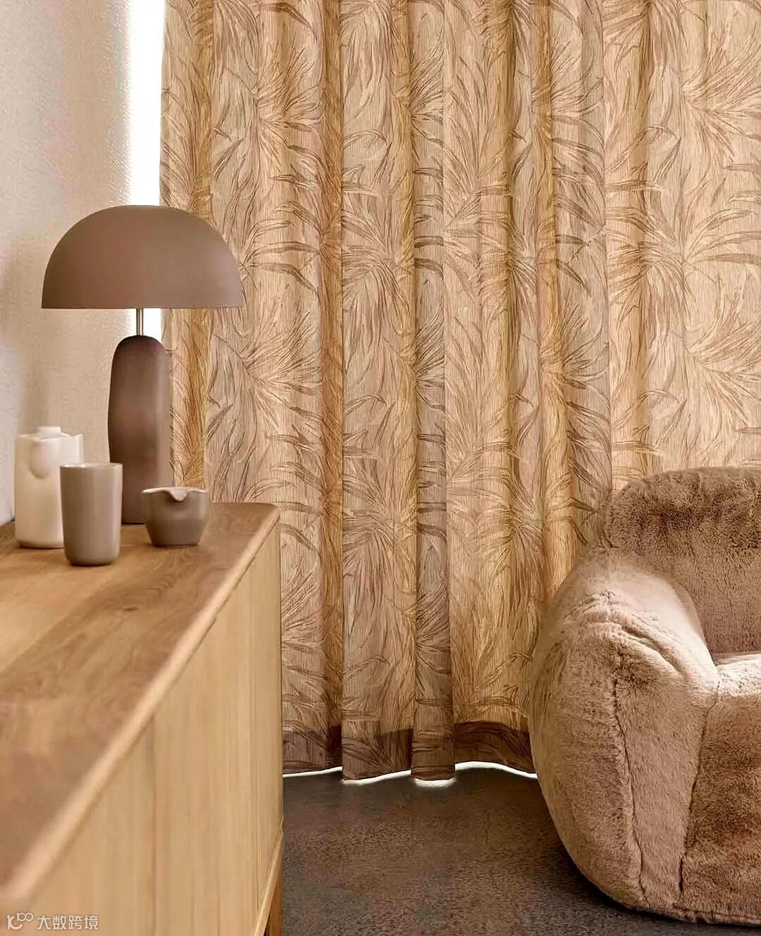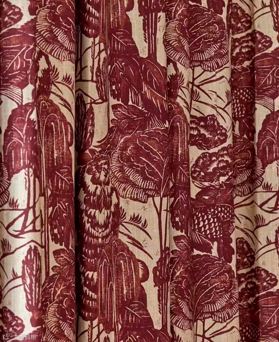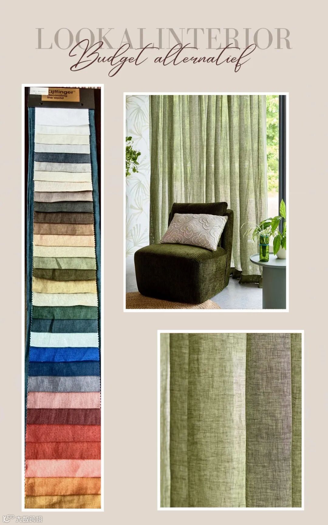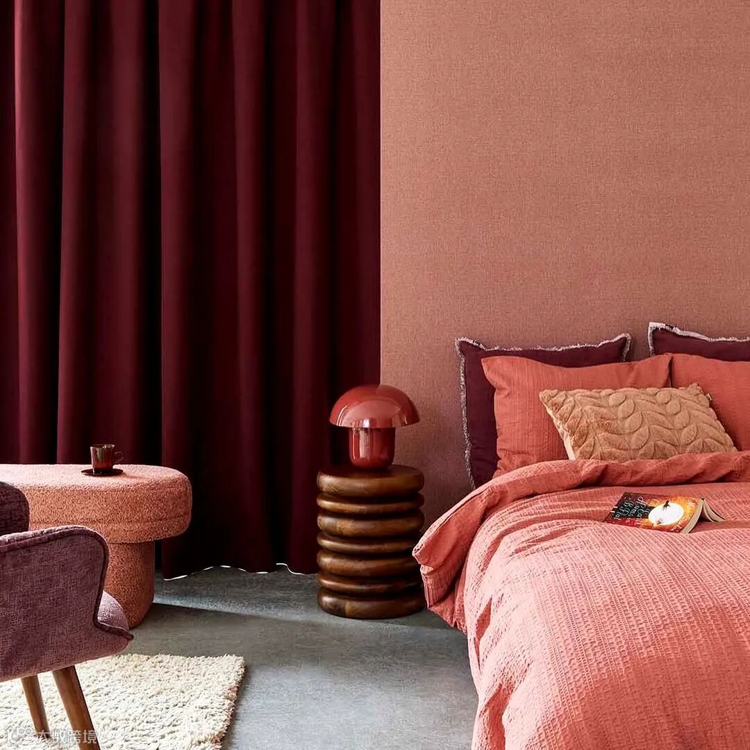 深紫红色在这个内部也很突出。这种阴影出现在窗框、楼梯和门上。劳拉正在寻找与框架完美匹配的窗帘面料。她选择了美丽的亚麻布Mount窗纱系列,项目编号7450-26,让它“亲密”的与地板接触(让它慷慨地掉到地上),这通常是亚麻窗帘面料的推荐,因为它们的长度会因温度波动而变化。结果如何呢?真是一个完美的整体搭配方案。