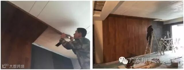 ▴施工现场:木地板天花打底