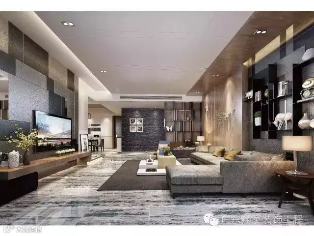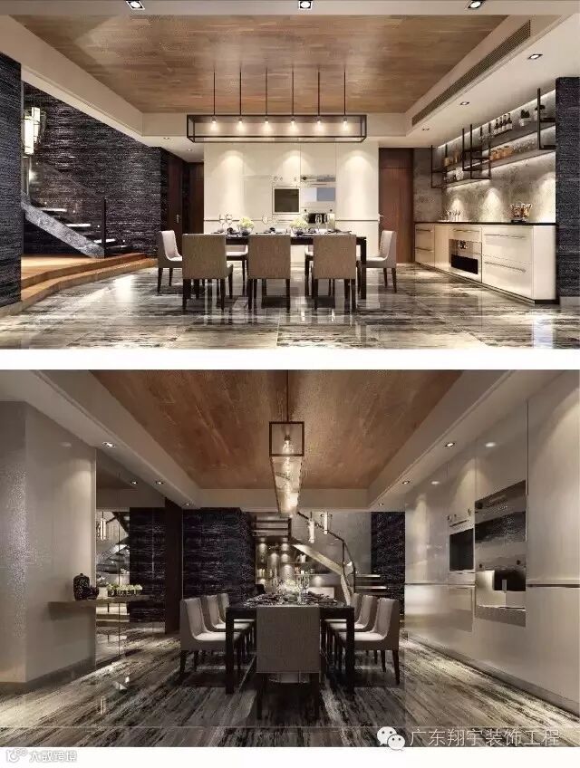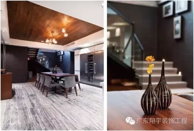 水泥板,岩石质感墙面,温暖的船木吊顶,