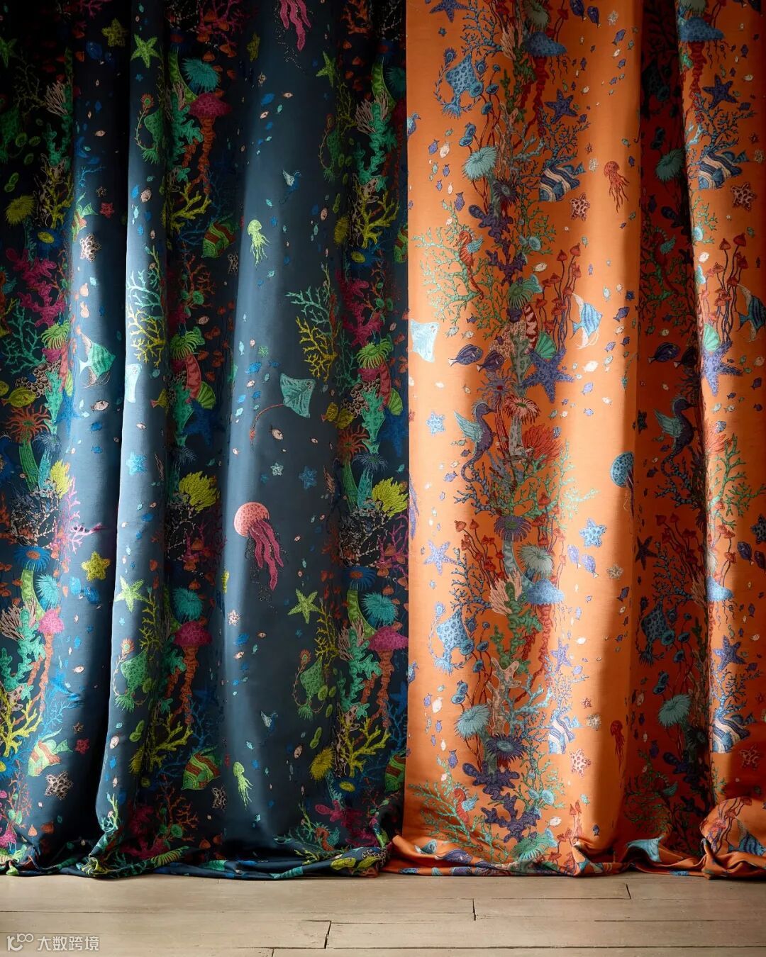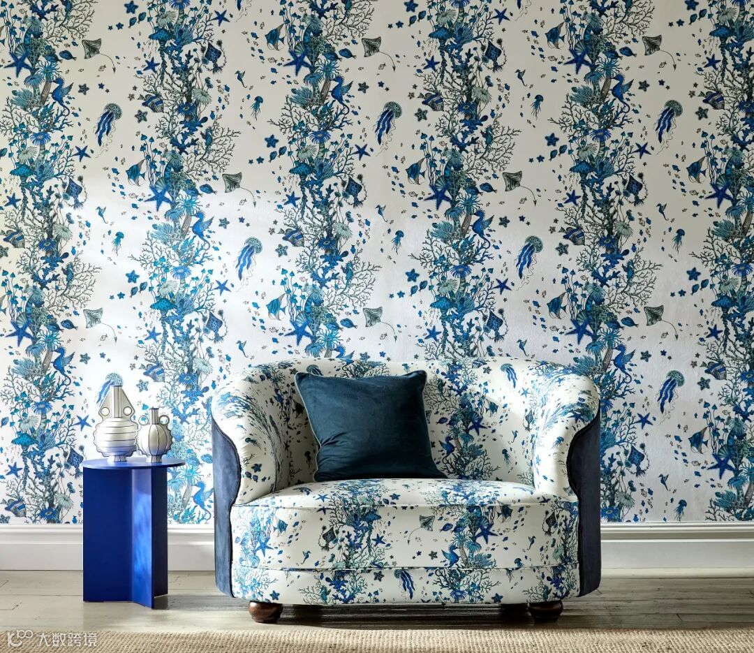 Emma J Shipley的设计灵感来自动物学家Ernst Haeckel的19世纪古董植物学图纸和儒勒·凡尔纳的小说《海底两万只狼》。Seaforest海洋森林系列邀请您逃离到水面下的一个梦幻般的新世界。发现了里面的黄貂鱼、鱼群和轻轻飘动的珊瑚。看到神话中的海马在旁边快乐地奔跑,或者海葵在一个你做梦时出现的场景中轻轻摇曳。这幅美丽的手绘插图在织物中栩栩如生;底色与图案相映成趣,贯穿整个设计。尽管蓝色和单色保留了其说明性的边缘,但Seafore 海洋森林系列在织物的图案和色调中成为了“海洋的”风格。