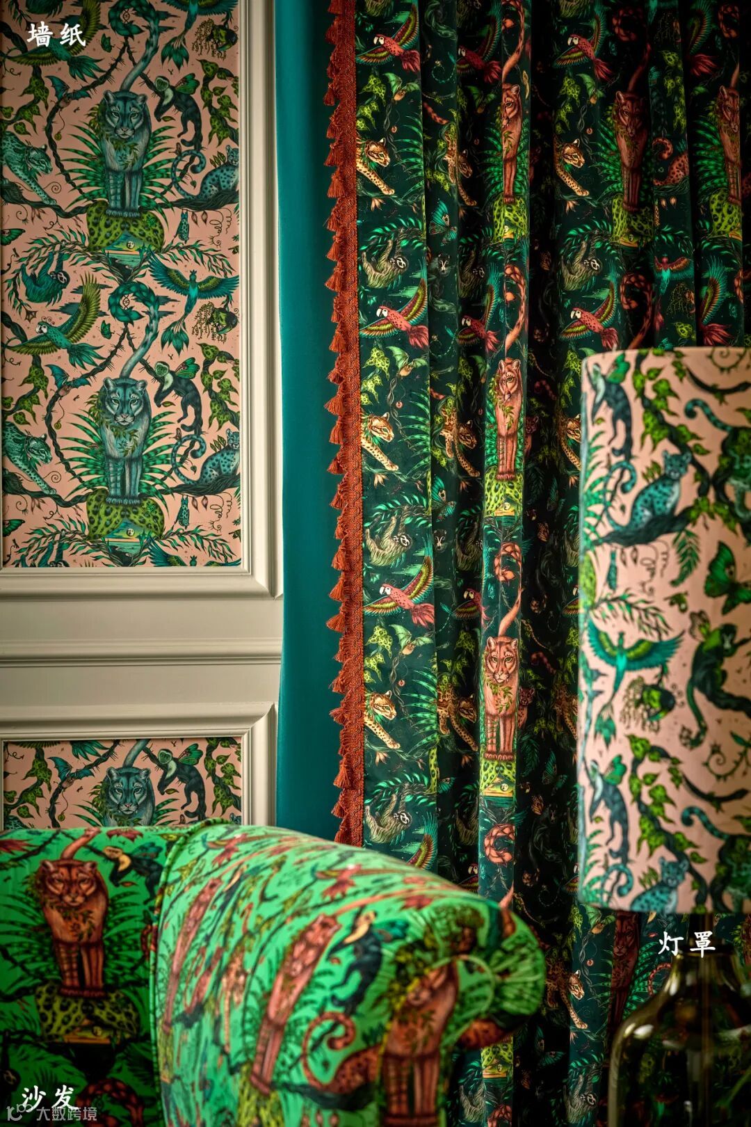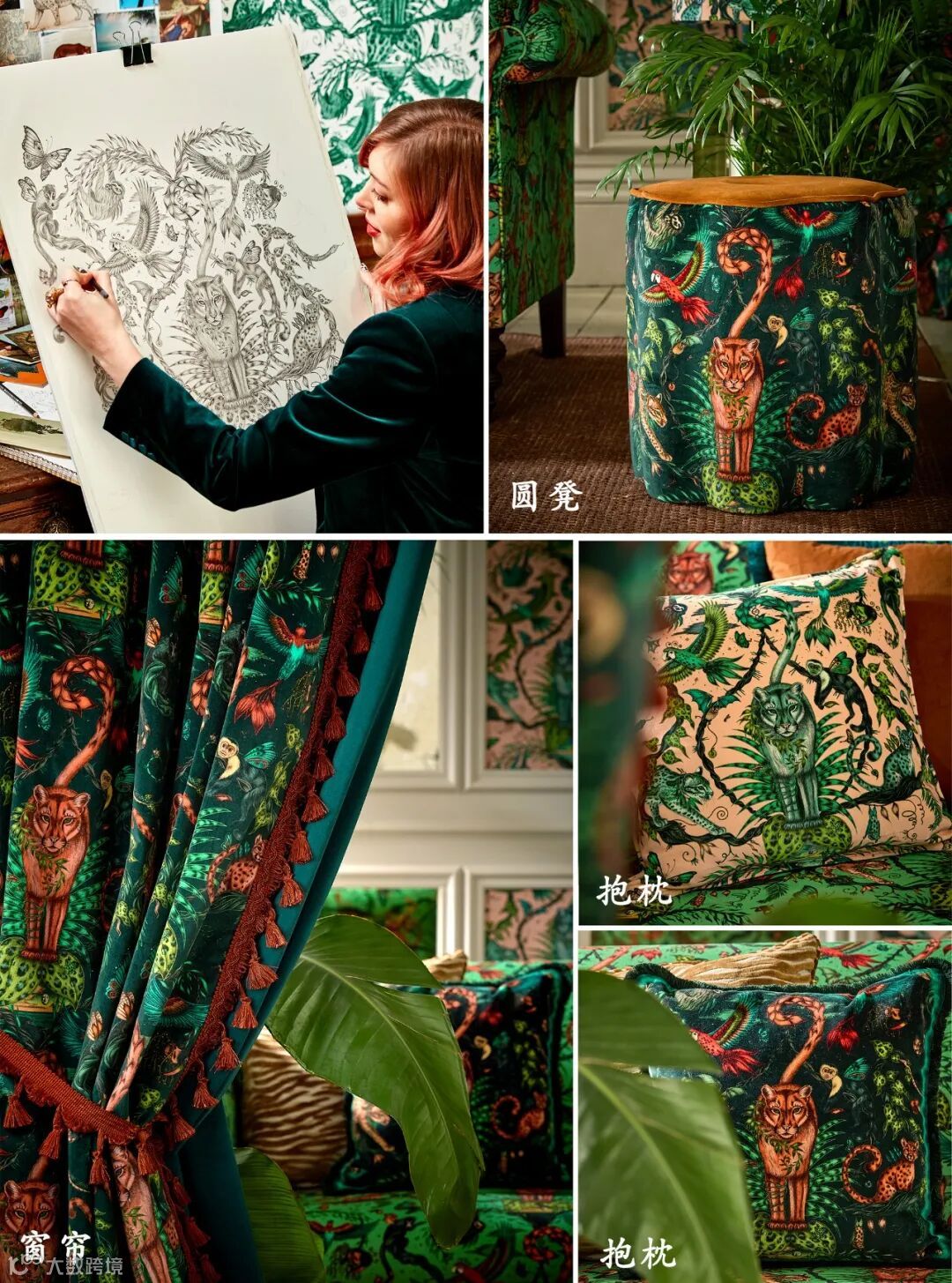 进入一个丛林梦幻景观,灵感来自Emma J Shipley在哥斯达黎加奥萨半岛的旅行,这是地球上生物多样性最丰富的地方之一。一只神秘的美洲狮站在舞台中央,周围是森林中其他奇幻的生物,包括金刚鹦鹉、猴子、树懒和豹猫。这款BosqueDreams梦幻丛林面料印在柔软的棉质天鹅绒上,可以用于一系列室内项目,从室内装潢到窗帘、靠垫等。