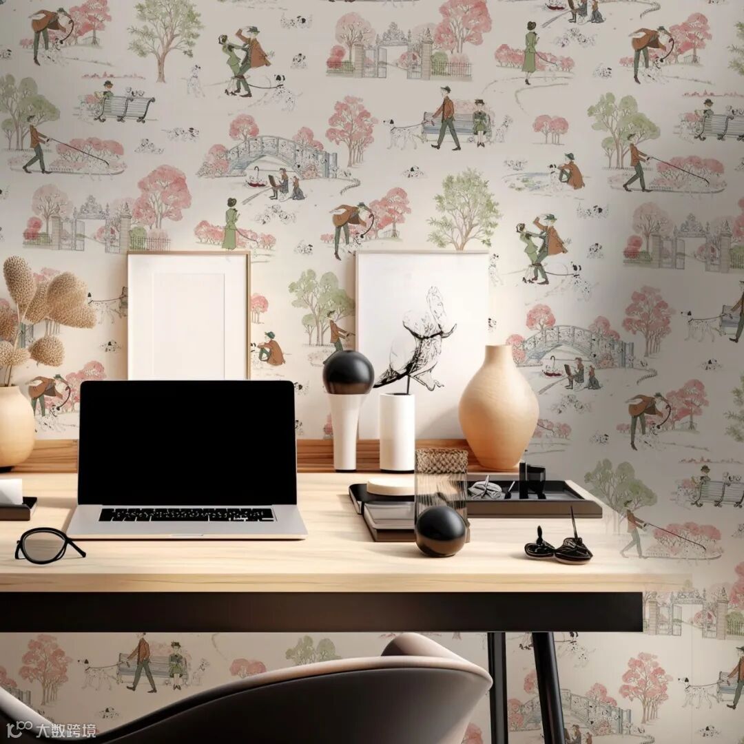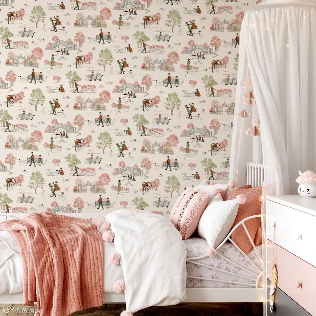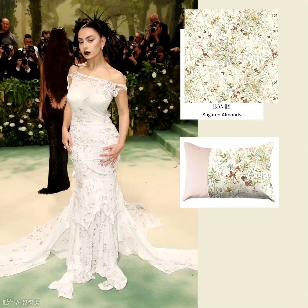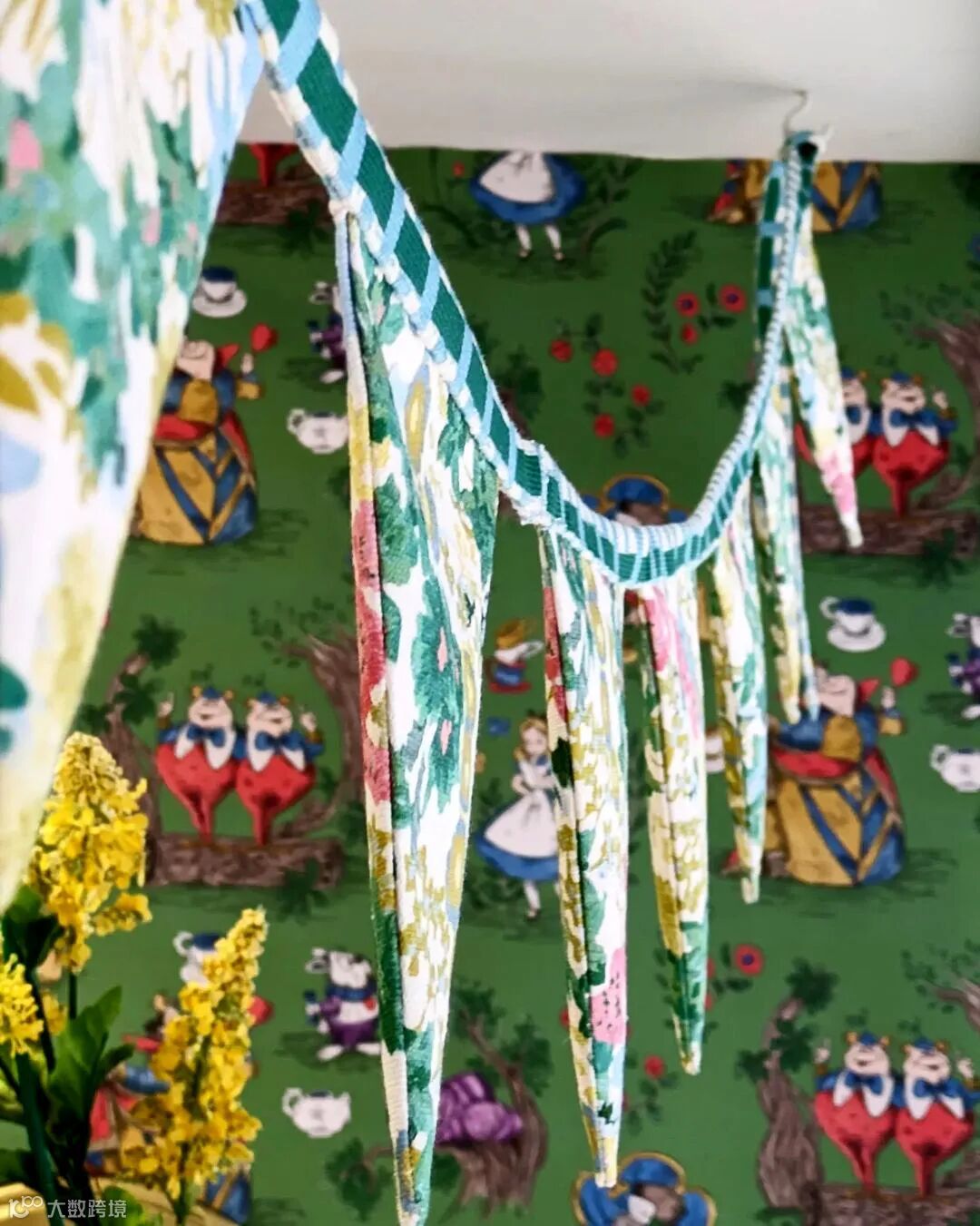 “鲜花朵朵,木叶纷纷。图案的主画面由各种各样形态各异的花草、叶子组成,穿插小鹿斑比等卡通形象,整体格调小清新又不失甜美活泼。”