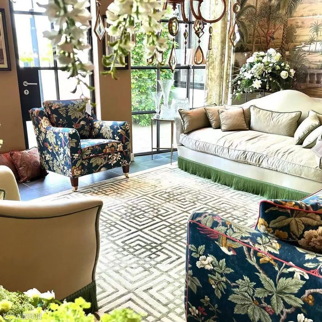 英式乡村田园风给人的感觉较为沉稳、典雅,充满古典的韵味,色彩秀丽,线条优美,注重配色与图案的对称之美,越是浓烈的花卉图案或条纹越能展现英国味道。