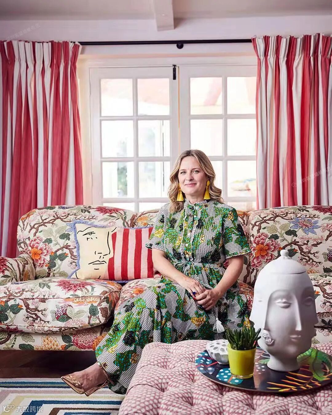 “我本质上是一个极繁主义者,所以我的口头禅是“越多越好”,我喜欢模式与模式的冲突。我的两个沙发上总共有13个散垫,没有两个是一样的,从花朵、抽象印花到条纹和几何图形,应有尽有。对我来说,快乐就在拥挤中。”