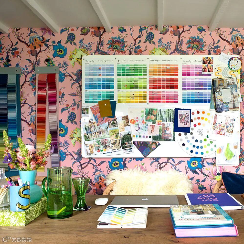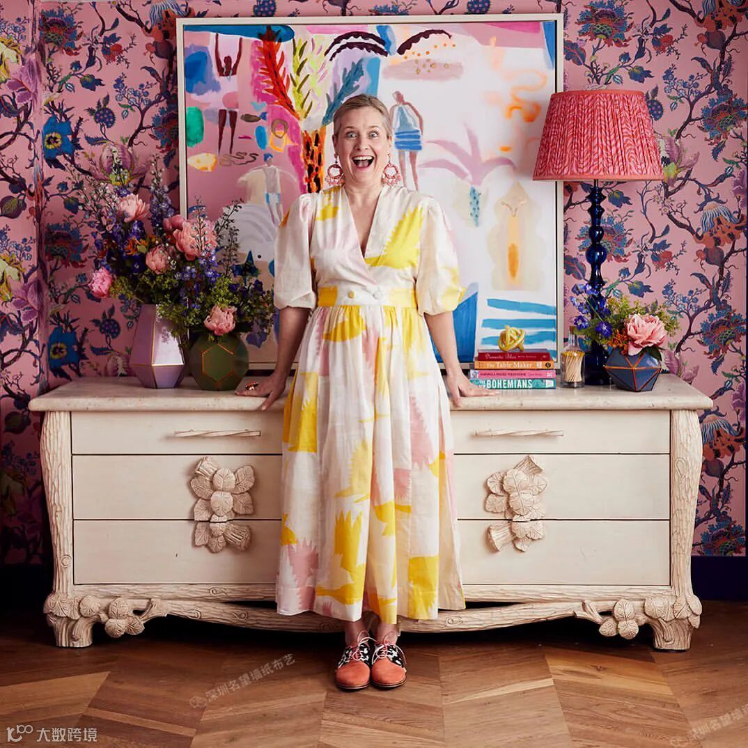 Harlequin与色彩女王Sophie Robinson这次最新合作推出了一个满满多巴胺、迷幻霓虹、充满活力的面料和壁纸系列,设计灵感来自大自然结合Sophie对色彩的快乐热爱,里面很多的设计灵感来自她自己的林地花园。Sophie Robinson是英国室内设计师、电视节目主持人、播客主持人和全能色彩专家。Sophie 以其对色彩的热爱和对色彩多元应用主义者的热情而闻名,在全球拥有越来越多的忠实粉丝。Sophie Robinson毕业于布莱顿大学,拥有3D设计荣誉学士学位,早年立志成为一名设计师或家具设计师。Sophie Robinson在主修室内设计之前在学校学习了木制品、珠宝、陶瓷和金属制品。
