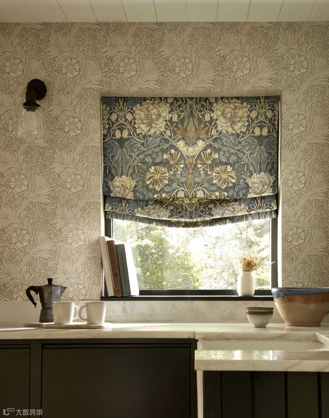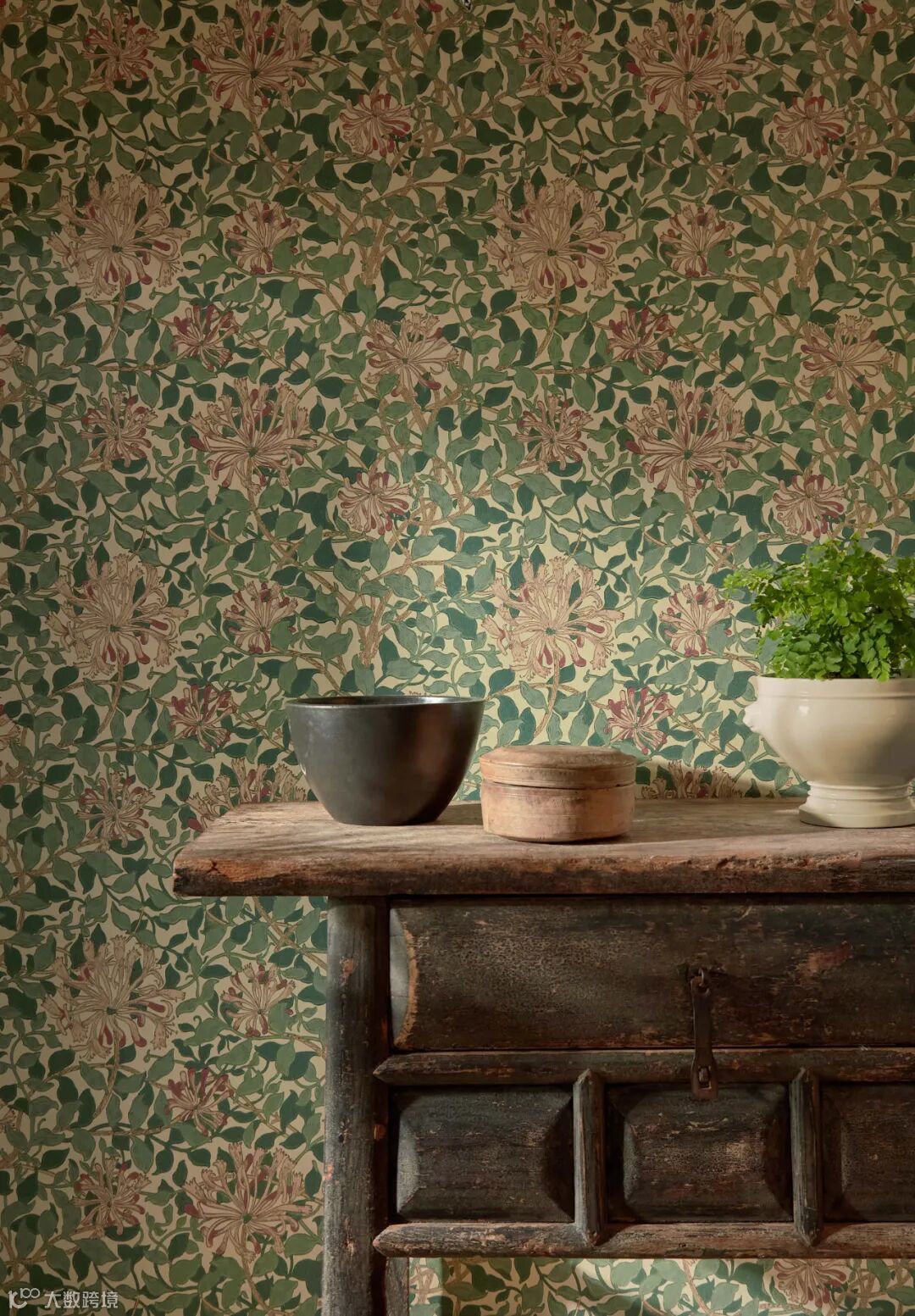 金银花是梅·莫里斯(May Morris)于1883年设计的,它是一种现实主义的藤蔓花朵,还有迷人的缠绕的叶子。虽然她最出名的作品是刺绣(梅在23岁时接管了莫里斯公司的刺绣部门!),莫里斯的小女儿也设计了几张壁纸。金银花是根据莫里斯公司档案中的样品重新想象的,这里有一种温暖的绿色配色。
