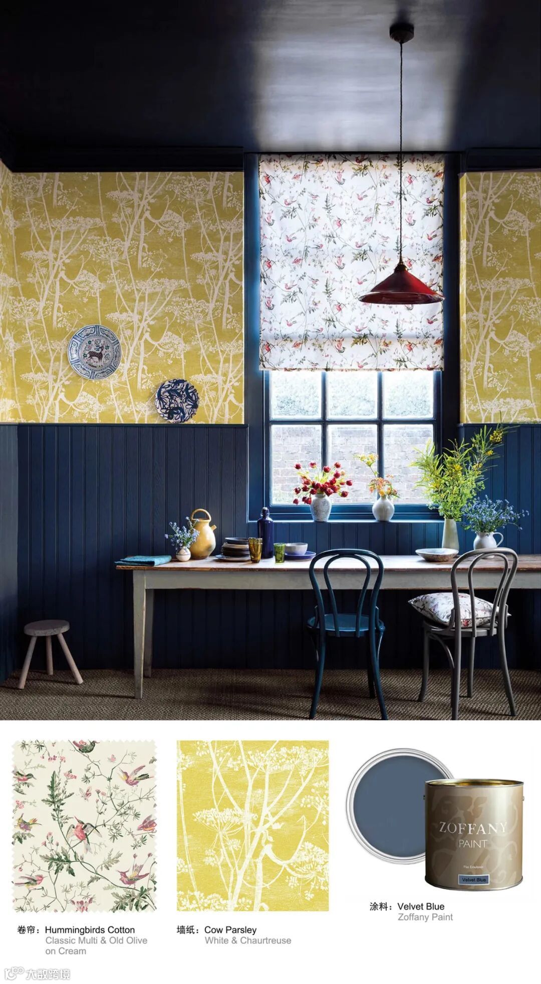 Hummingbirds蜂鸟图案是Cole&Son最受欢迎的设计之一;蜂鸟小巧的体型已经成为设计公司图案的首选。