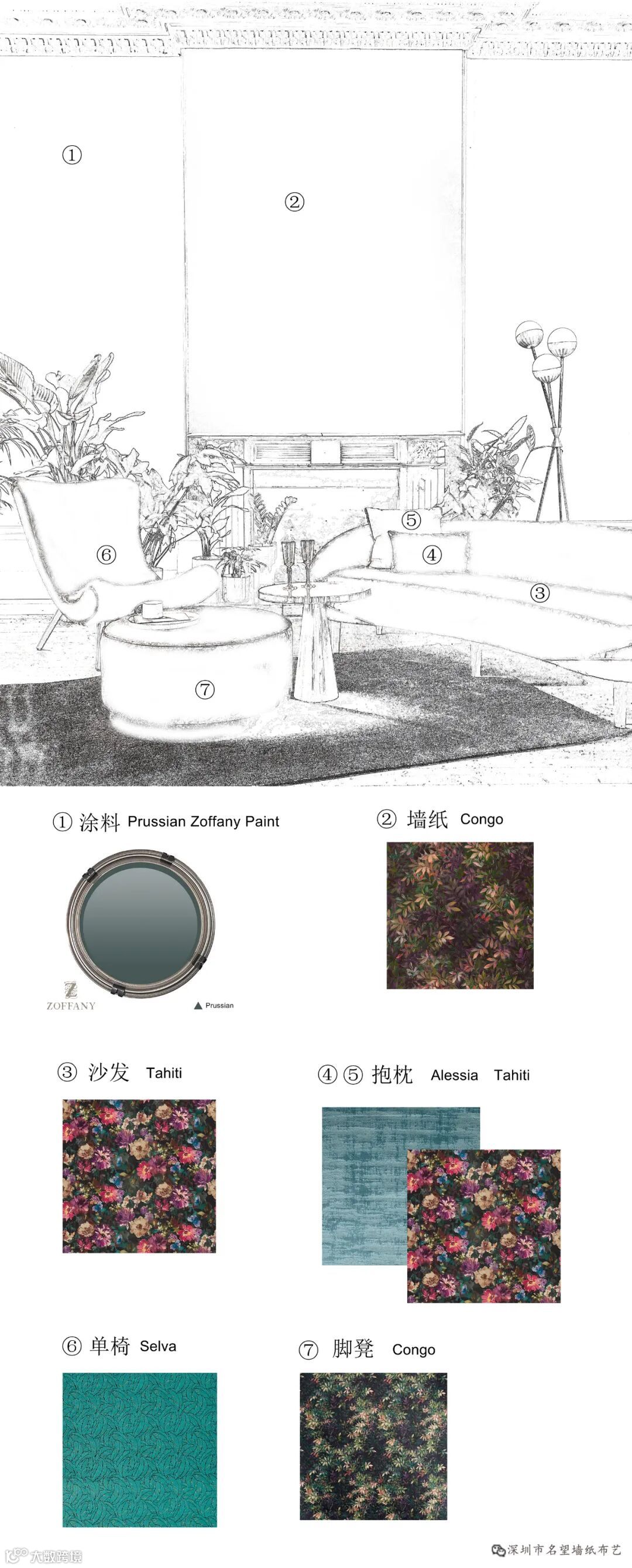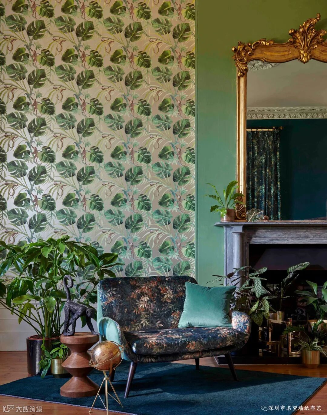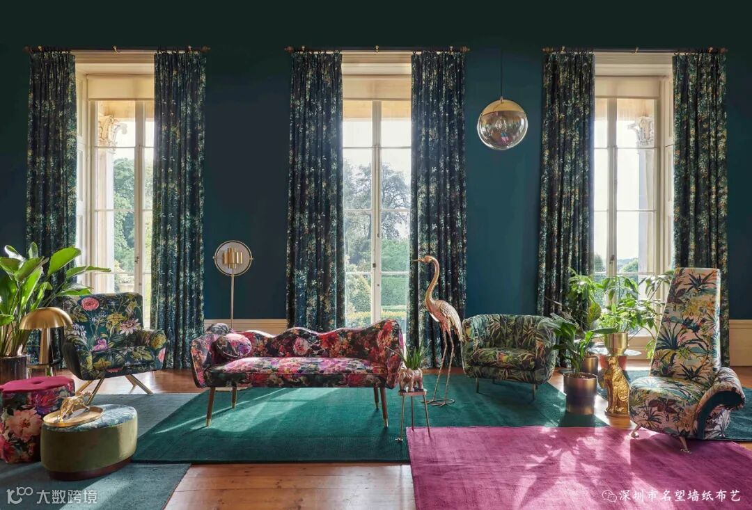 刚果以中部非洲的热带雨林命名,这款图案你能感觉到阳光穿透刚果雨林的苍穹,出来的画面具有浓郁的民族风情,有着独特的风韵魅力。它用深邃而富有戏剧性的颜色印在富丽堂皇的天鹅绒上。因为天鹅绒本身具有柔和的光泽和美丽的纹理,搭配油画效果的图案,复古中带着奢华,奢华中透露着颓废感,呈现出高级感。