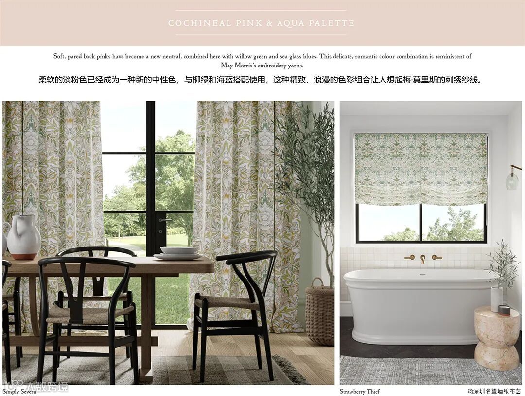 Morris&Co.新推出的Simply Morris简单生活系列,这是一本集标志性面料和墙纸于一体的简约系列,采用一系列清新、引人注目的色彩搭配组合。Morris&Co.推出的Simply Morris简单生活系列是设计师精心挑选Morris&Co.档案馆里经典面料和墙纸中最具代表性的图案,经过专业设计,重新融入清新的花园色调。