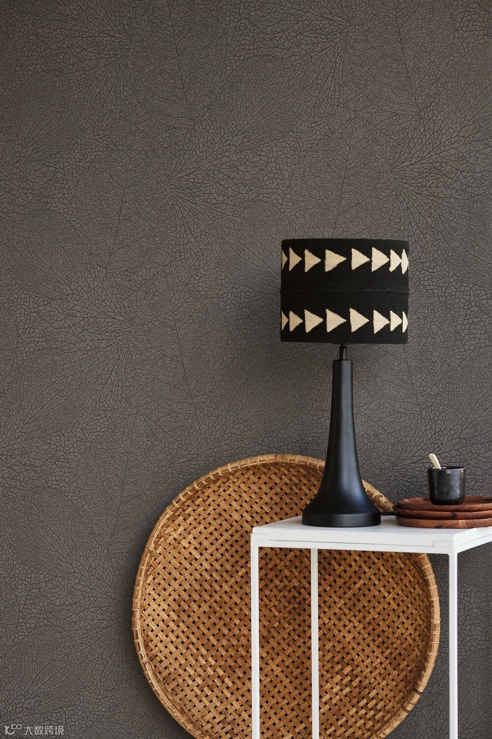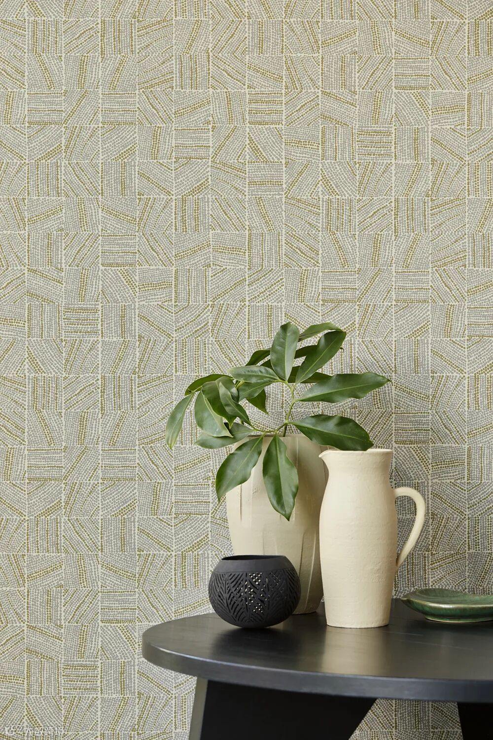 “编织风情” 以如同金属条编织的纹样构成, 线条上下穿插构成一道时尚之墙, 金属光泽和凹凸的纹理使这款壁纸有著一种沉静稳健的风格, 充满力量。