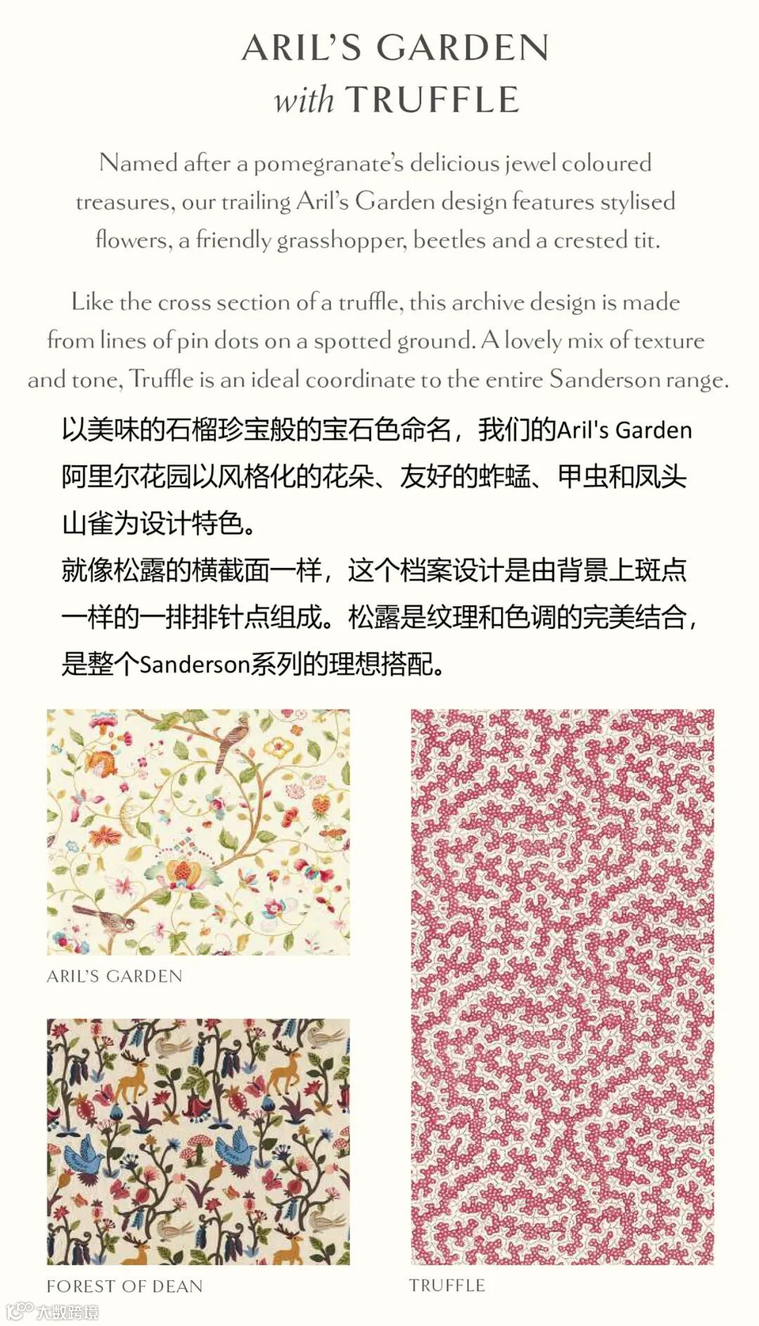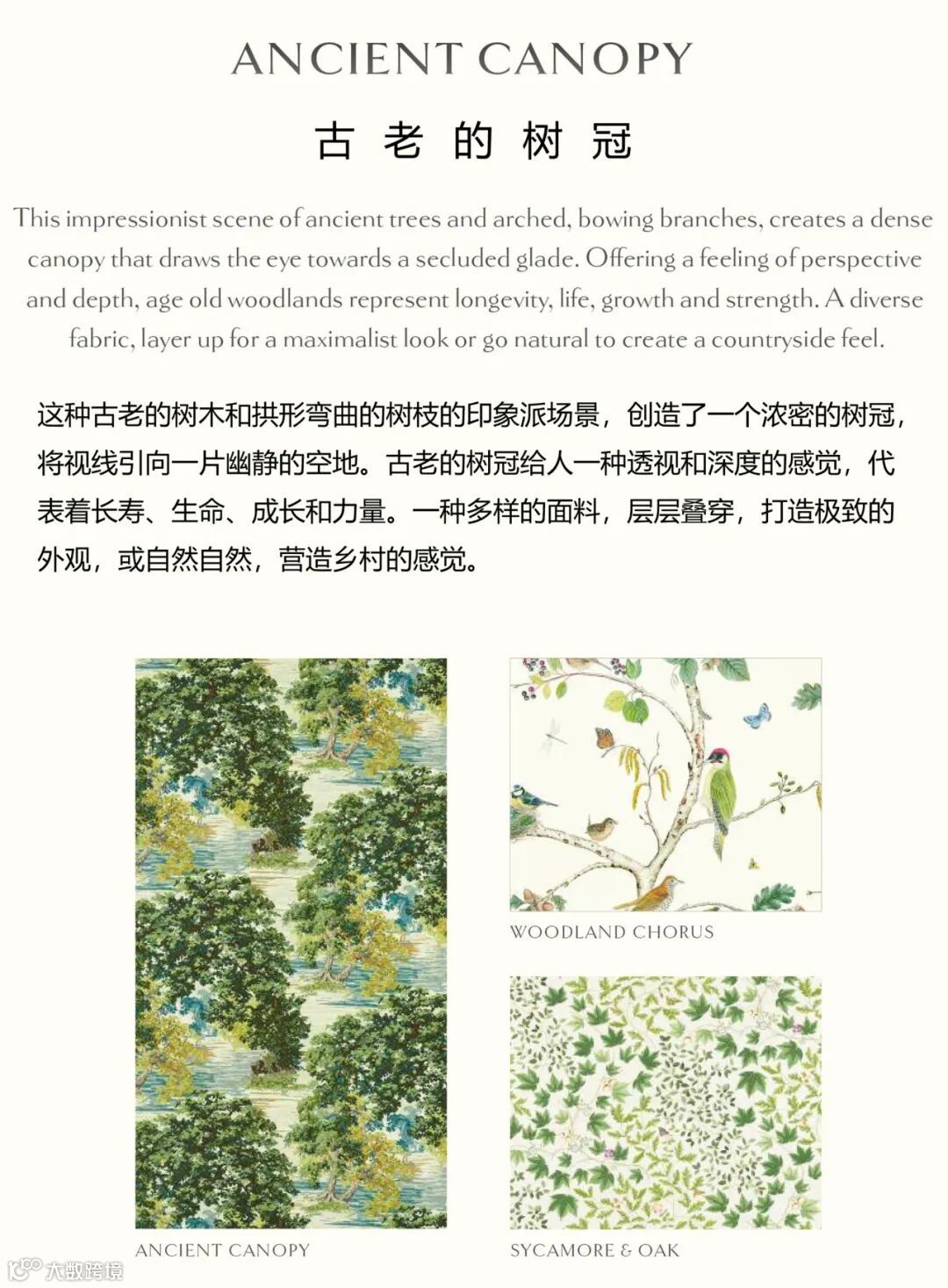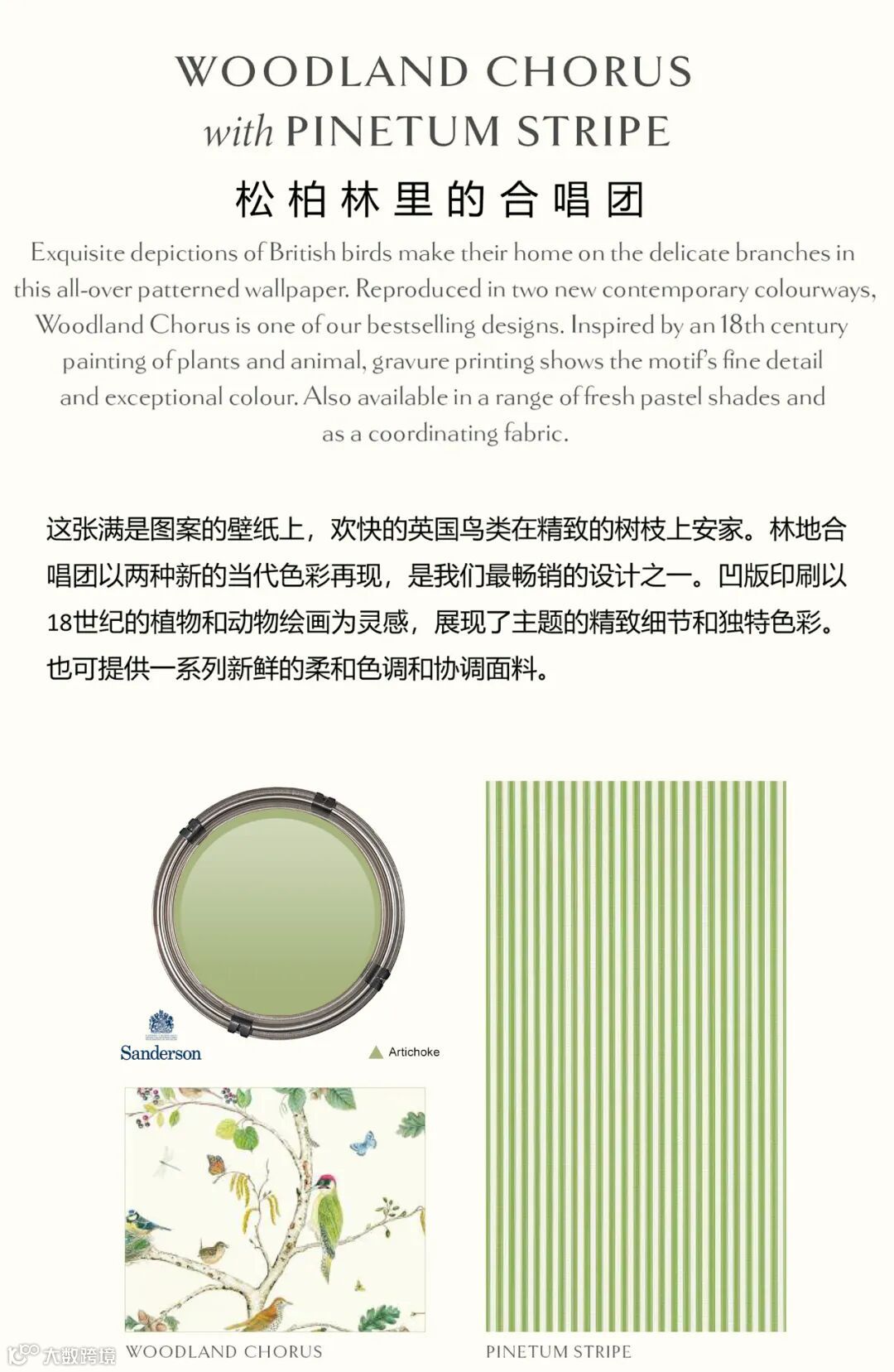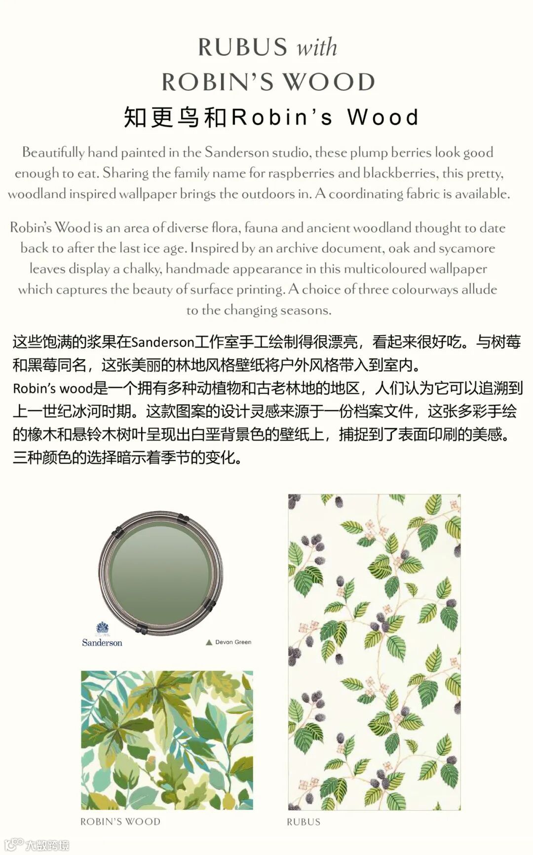 Sanderson2023年新品植物园系列将当代元素与收藏档案影响相结合,再现了这个备受喜爱的乡村美学的辉煌,是对雄伟树木、幽静空地和当地野生动物的一种令人难忘的诠释。
