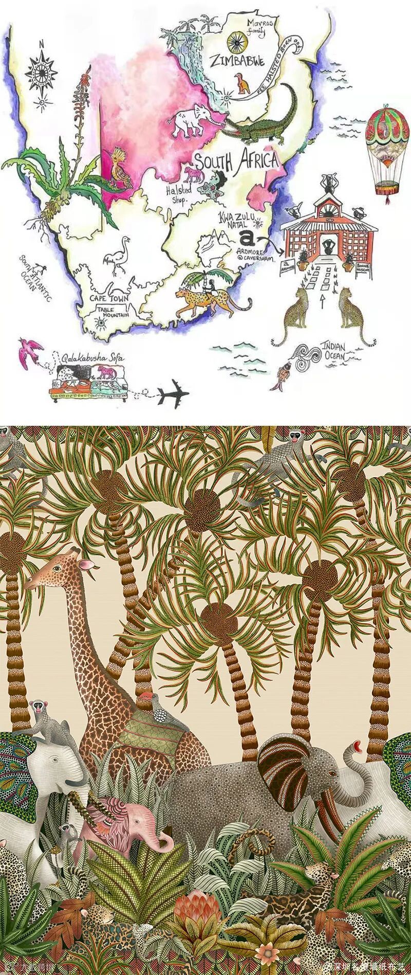 Cole&Son 2022年新推出的Ardmore Jabula系列设计灵感来源于阿尔德莫尔(Ardmore)陶瓷工作室里的收藏工艺品。这个系列体现出强烈的非洲部落风格,通过南非艺术家们的快乐灵魂,把包罗自然界的美景,南非的滋养大地和周围生长的植物群通过手工技艺呈现出来。狂野又奔放,唤醒最原生态的自由气息,独具格调。