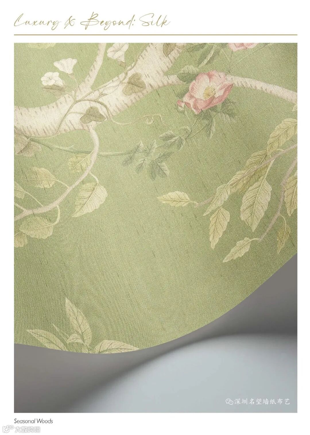 The Gardens: Vol. I 艺术花园系列里有4款精选Seasonal Woods图案的颜色提供超豪华丝绸背景。100%天然竹节真丝材质墙纸因偶尔出现竹节而更加突出,正是因为这个特征使得生产出来的每一卷墙纸都是独一无二的,你找不到两卷一模一样的墙纸。