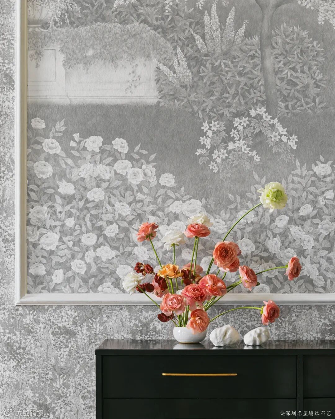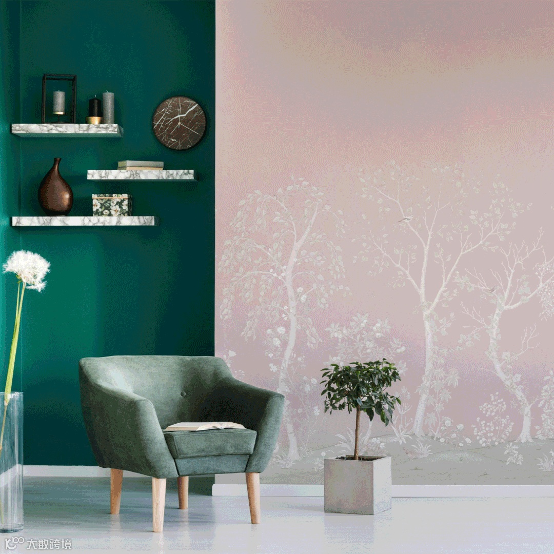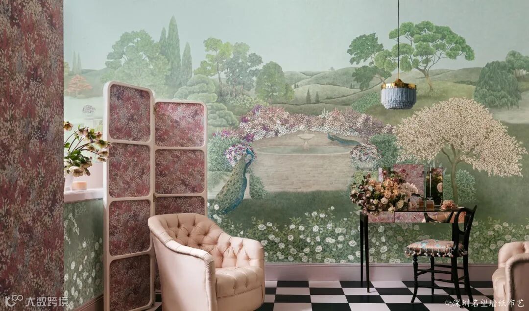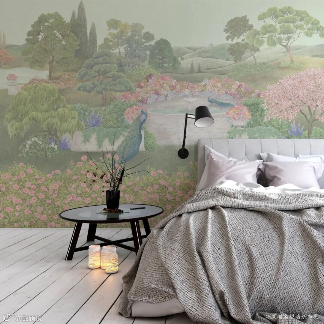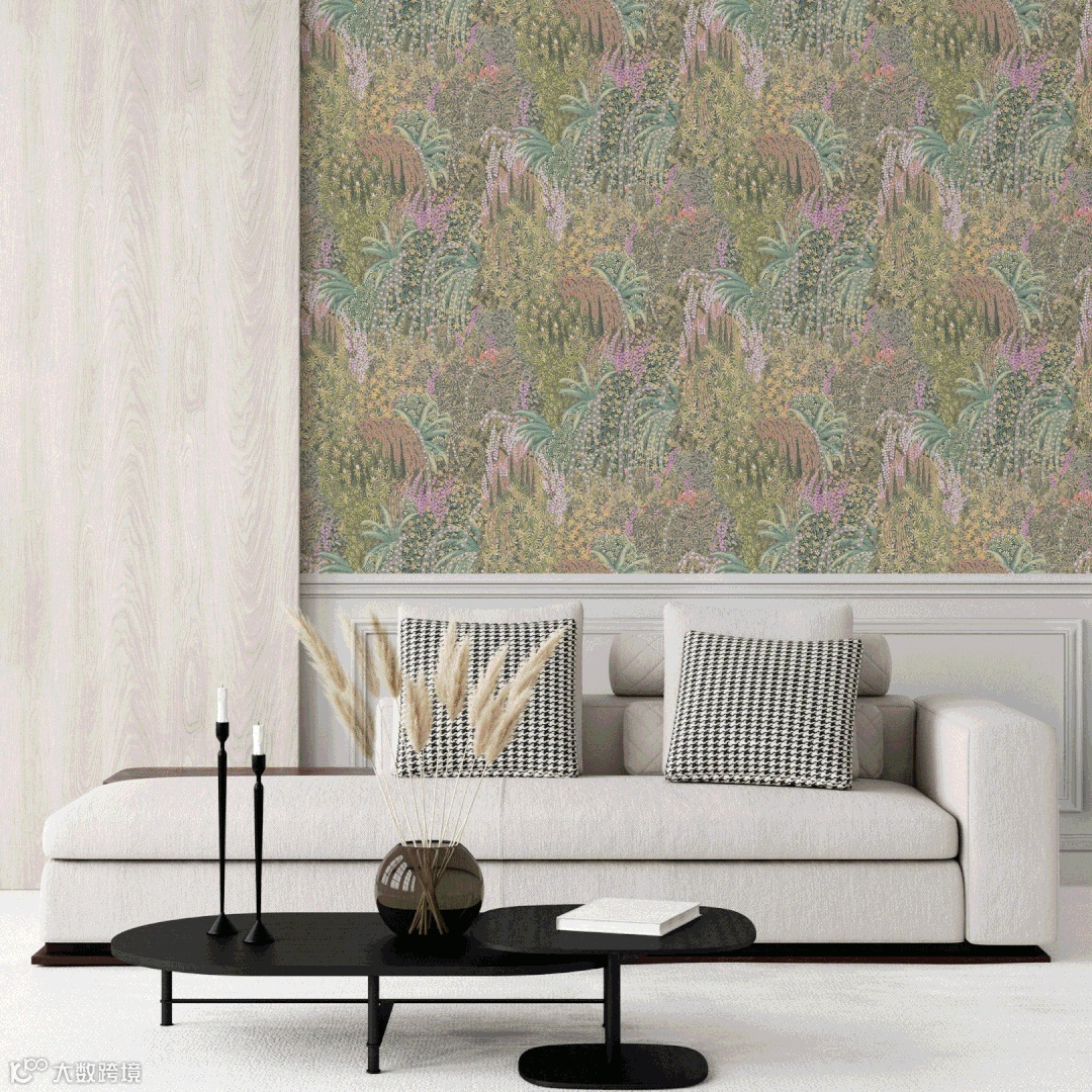 广阔的英式景观花园的浪漫与阳光普照的土地上的植物和树叶的奇思妙想相得益彰,整个季节都在低调的林地自然美景中完成了叙述。在规模和细节上都很宏大,壁画由7个部分组成,可以根据任何装饰的空间大小进行调整,以获得迷人的功能,也可以重复使用,以获得迷人的空间环境。