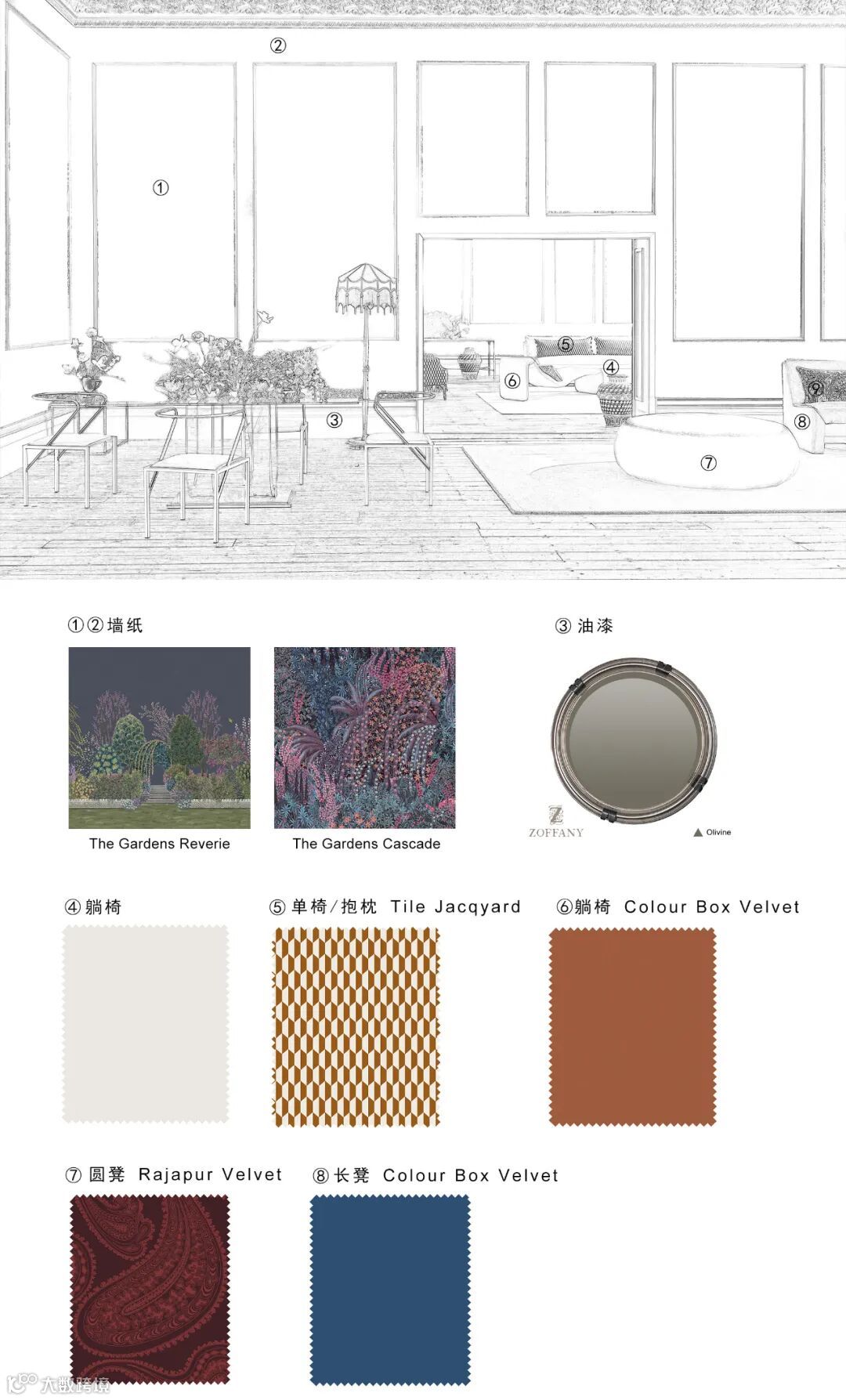 特别声明:名望旗下Cole&Son品牌图案花纹已在国内外同步申请专利,仿冒必究!我司将严格全面追究法律责任。谢谢。