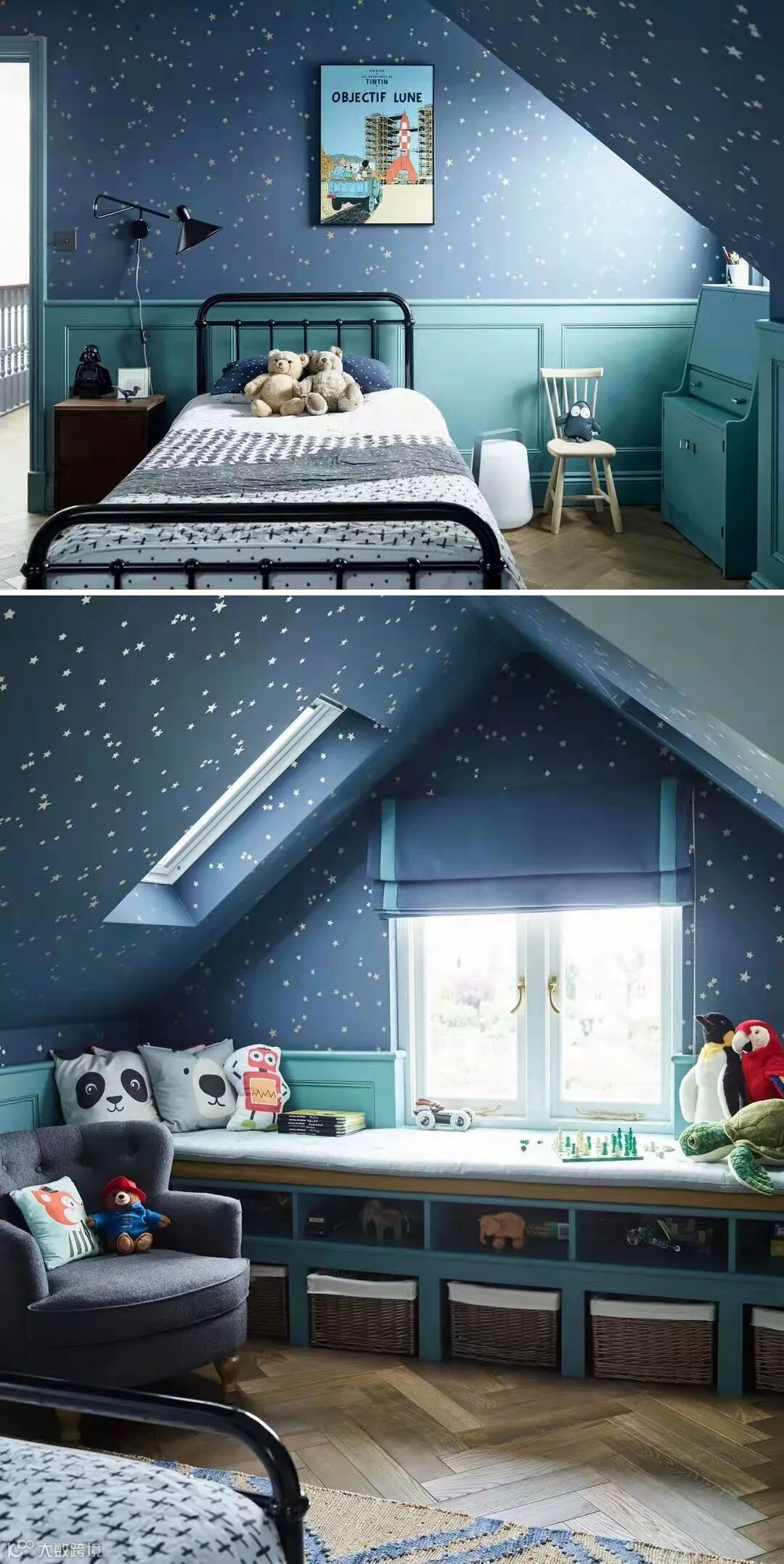 卡通的元素进行点缀, 适当增加一些宇宙、星空等元素可以激发孩子的想象力充满童趣又显得活泼可爱。