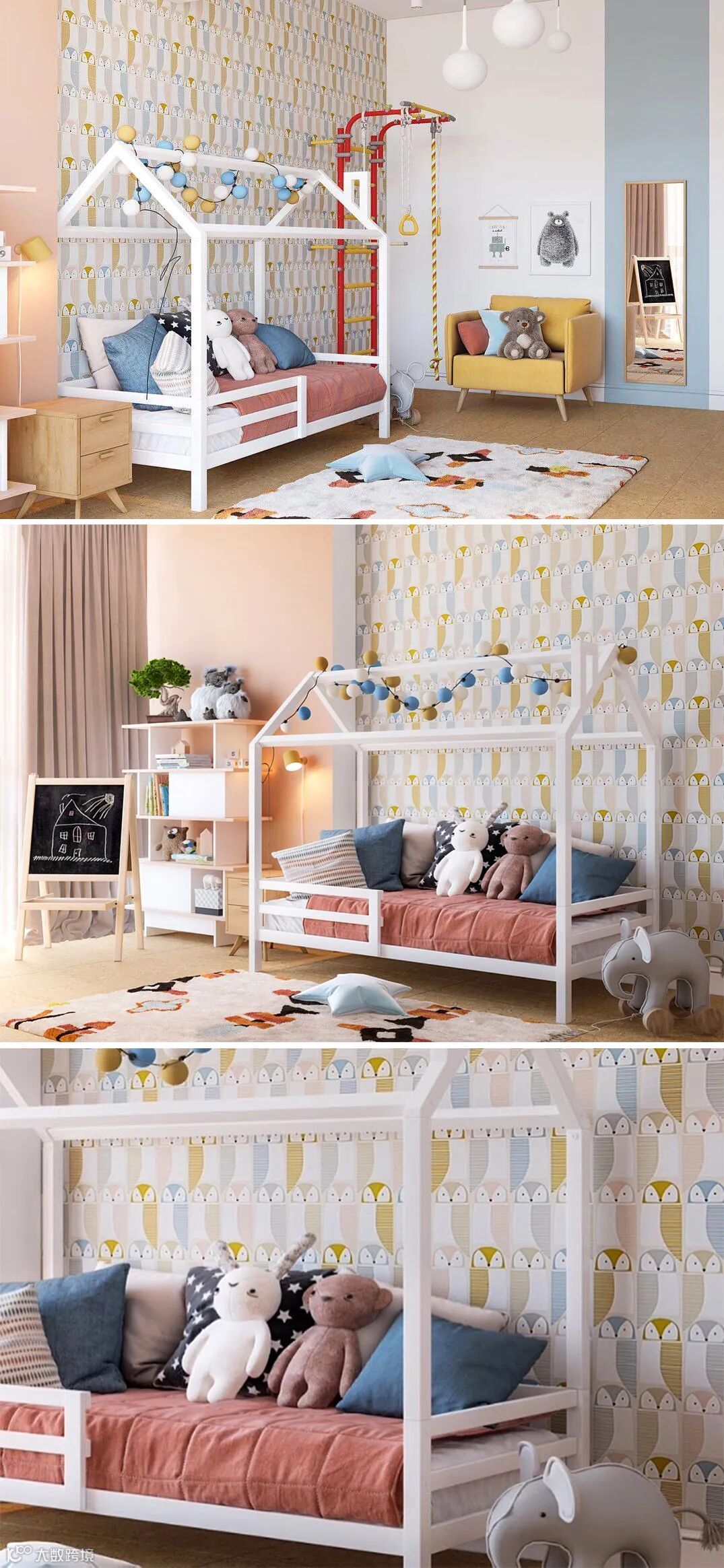 每个小朋友的童年,如同一个天真烂漫的美梦,即便长大了,回忆起来依旧有余温。孩子的快乐成长牵动着每一位父母的心,父母都想给孩子一个健康舒适的成长环境,儿童房不仅仅只是一个空间,更是承载着孩子整个童年回忆的地方。儿童房在色彩搭配上可以选择 鲜明、愉悦的暖浅色,并适当增加一些对比色,营造清新活泼的空间氛围,让宝宝感到满满的家的温暖。