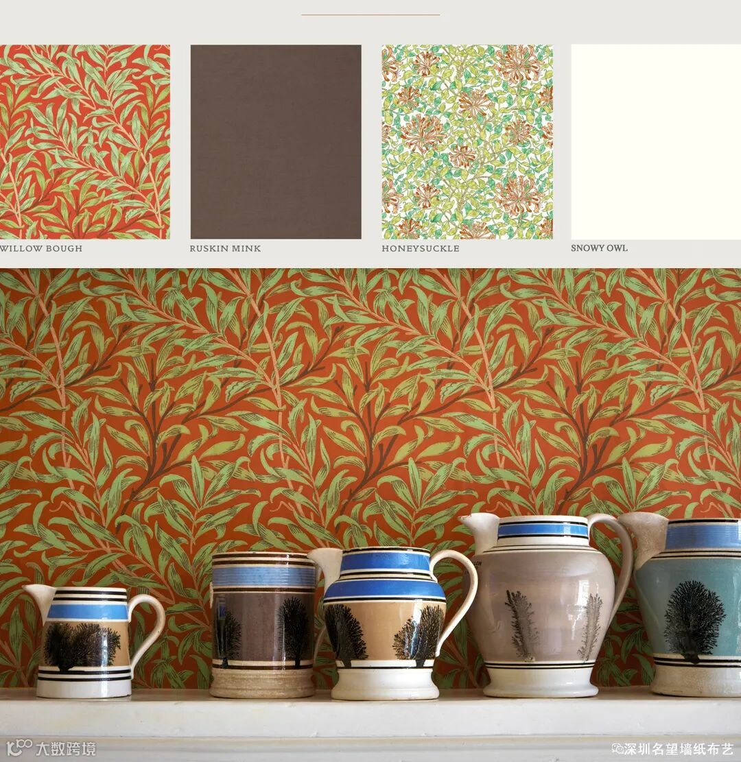 Morris&Co. Queen Square皇后广场系列可以搭配Ruskin Weaves素色布系列和Sanderson油漆一起配套使用,一站式解决空间的整体软装。