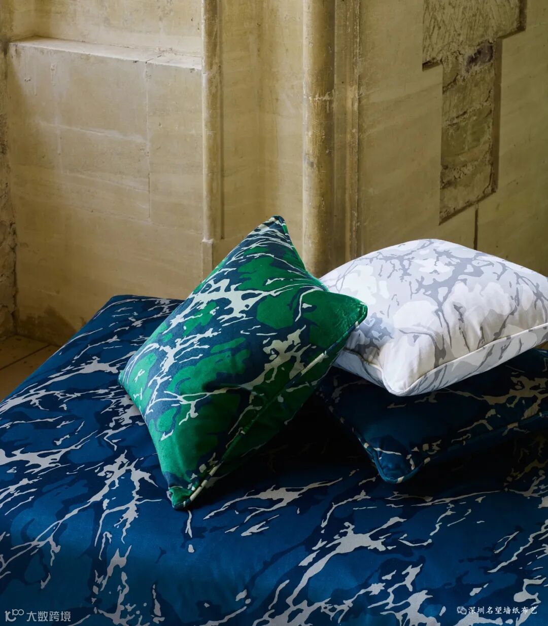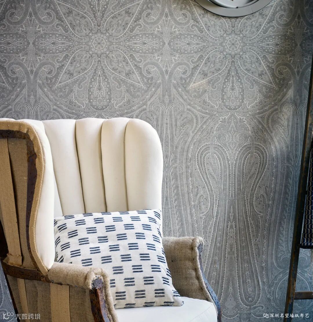 Paisley佩斯利图案可以说是世界上最古老的图案,佩斯利花纹(paisley)也有人会称他为变形虫、勾玉图案、芒果纹、腰果花等等。起初盛行于印度一带,图案是取自印度教的生命之树,形状有如菩提叶,由许多圆点和曲线构成,有着吉祥、绵延不绝的美好含意。18世纪中叶,拿破仑在远征埃及途中把带有这种纹样的克什米尔披肩作为纪念品带回法国,作为当时的IT girl——皇后约瑟芬对其爱不释手,很快这个神秘又美好的花纹风靡整个欧洲上流社会。不久佩利斯纹所生产的织物就传入英国,英国的东印度公司也开始做起了倒卖的生意。而到了19世纪,光靠印度的原产已经不能满足消费了,于是欧洲各地开始仿制。在苏格兰西部的一个叫佩斯利(paisley)的小镇,那里的能工巧匠们运用涡纹旋花纹制成的针织品,以它无以复加的豪华质感、独一无二精细纹理享誉世界,因此这个诞生于东方的纹样被冠以西方小城之名——“佩斯利”,从此流传于世。在室内设计中,它的运用也十分广泛,包括墙纸、窗帘、地毯、各种沙发和抱枕包布都可以见到佩斯利花纹的影子。