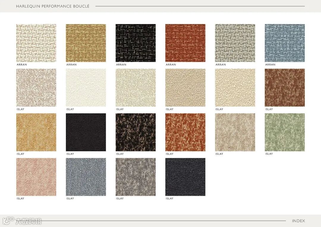 2024年Harlequin新推出的Performance Boucle 布克勒羊绒家私布系列面料很好的体现出bouclé质地的奢华,出人意料的性能价值来自于它,柔软奢华的手感让人感觉奢华而家常。沙发的纹理和羊毛材料提供了一种诱人的温暖,而中性色调提供了一种干净、简约的美感。从转角沙发到组合沙发,从弧形靠背到枕头靠背,从双座到三座,沙发的选择很多。双人椅和床也是一个受欢迎的选择。