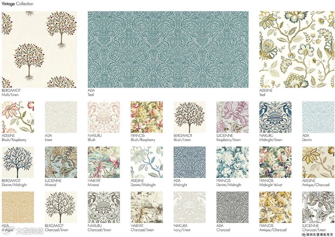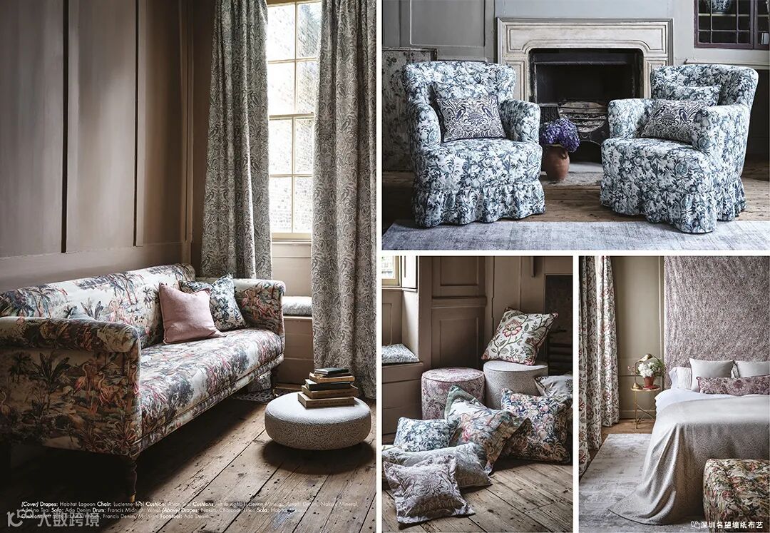 Clarke&Clarke Vintage 复古风系列以它无与伦比的豪华质感和独一无二的精细纹理花纹图案,呈现出浪漫格调的复古风,表达对自然的热爱。