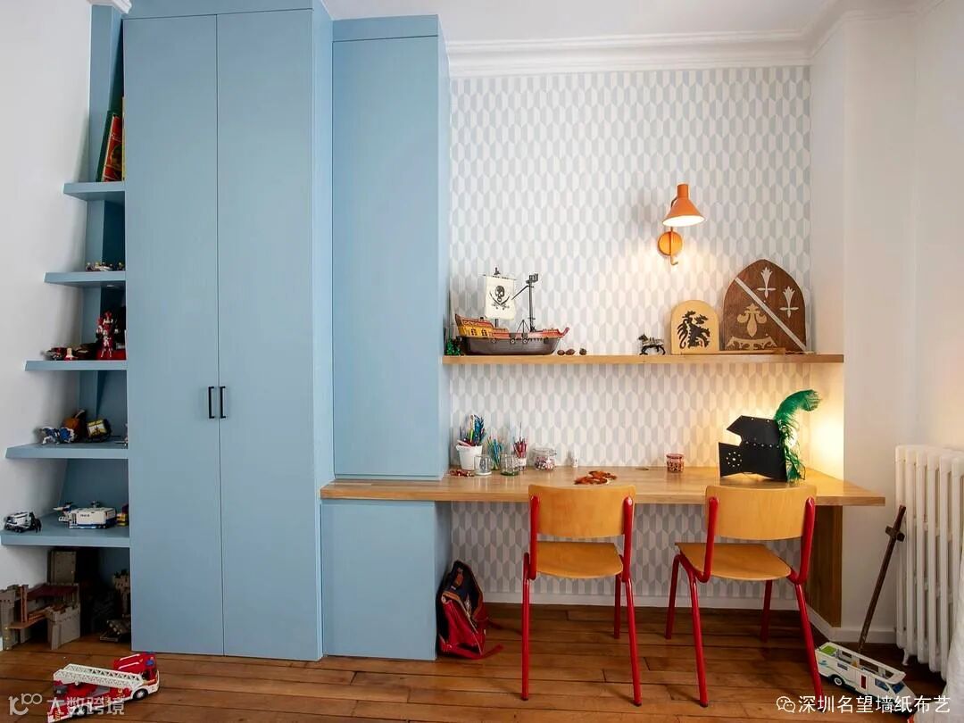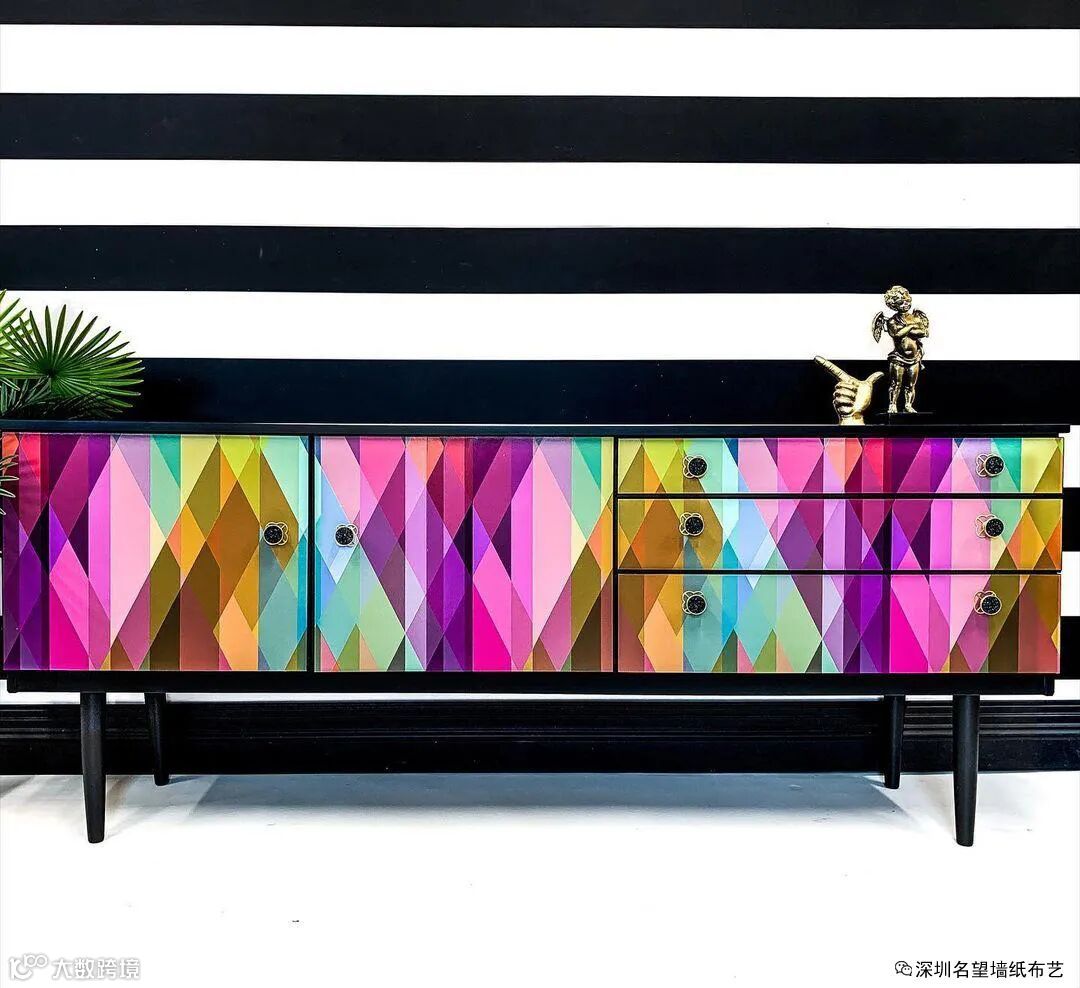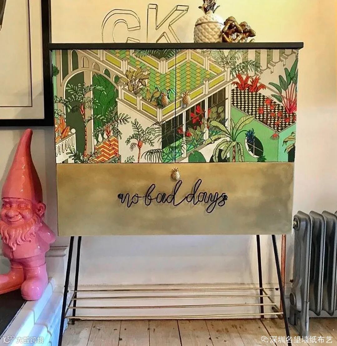将墙纸巧妙铺贴在柜子或抽屉中,使柜子面貌一新,人们打开柜门和抽屉拿取物品都能有个靓丽好心情。
