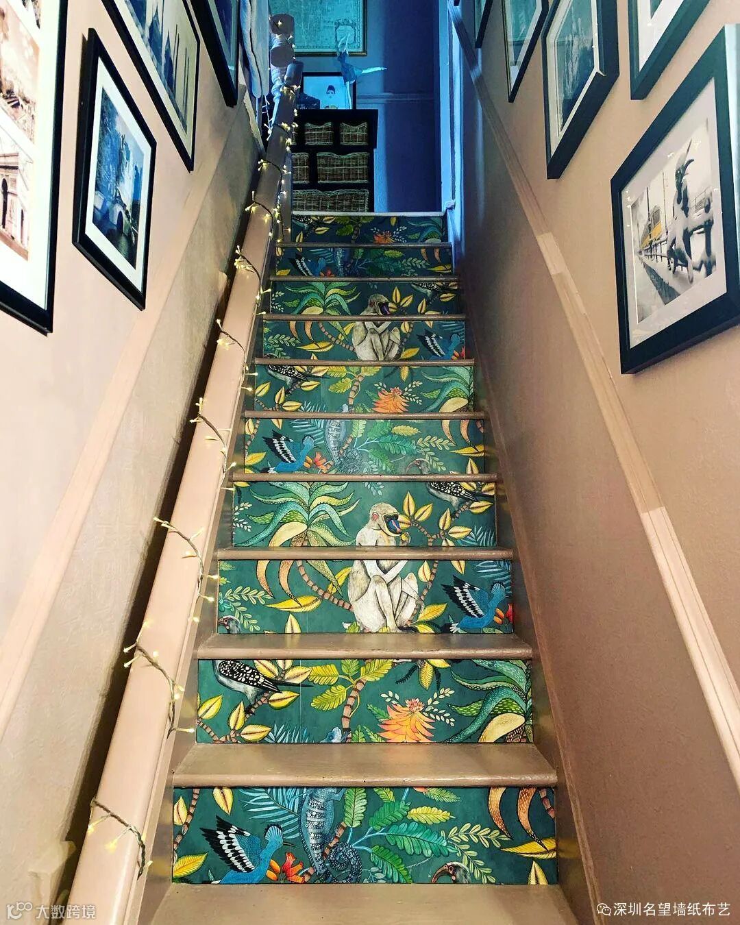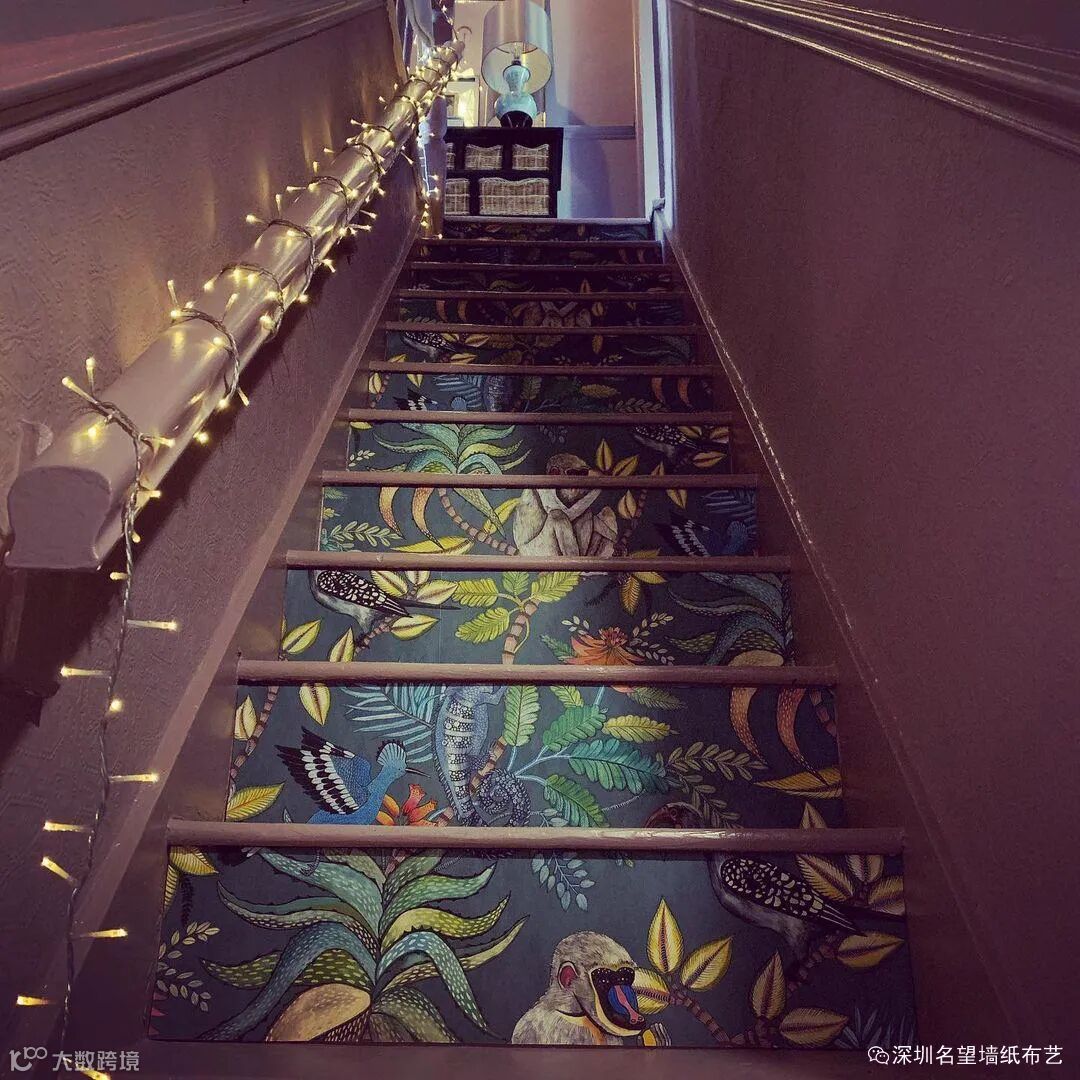 楼梯作为我们家居环境中较为独立的一处,这样一个区域它既不非得和主厅色调一致,也可以完全抛开色彩搭配自成一方。楼梯贴上墙纸,绝对可以成为家居装修的点睛之笔。