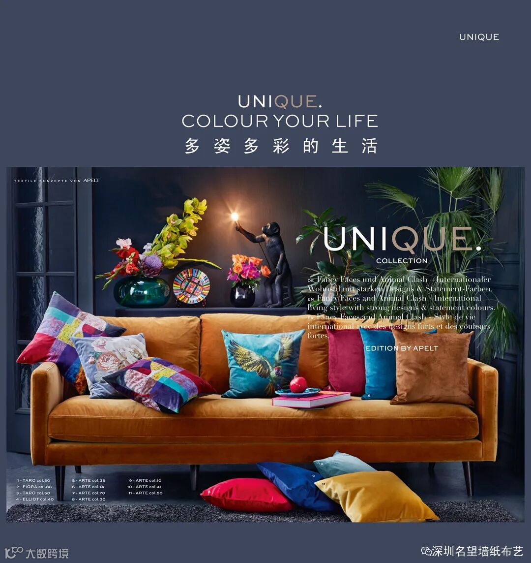 德国Apelt产品系列包括提花布和透明材料的窗帘布料,美丽的桌布,餐巾,床单和枕头等,有很多的设计图案和颜色可选。我们的纺织布料都是由我们的工作室设计,并在德国和欧洲的高技术投入生产。