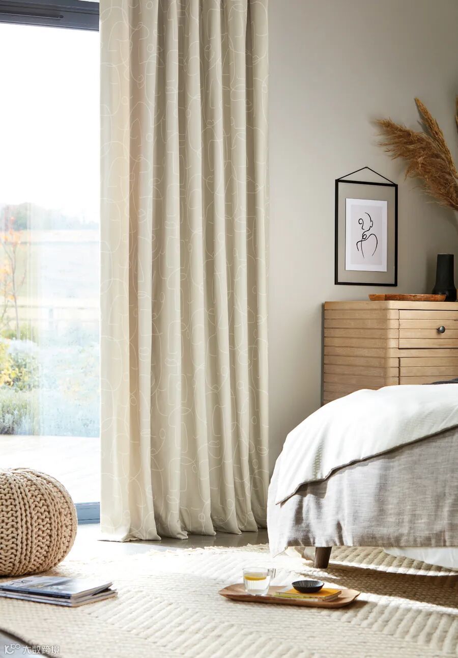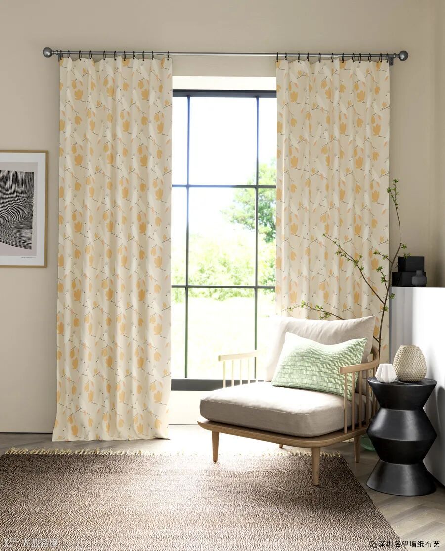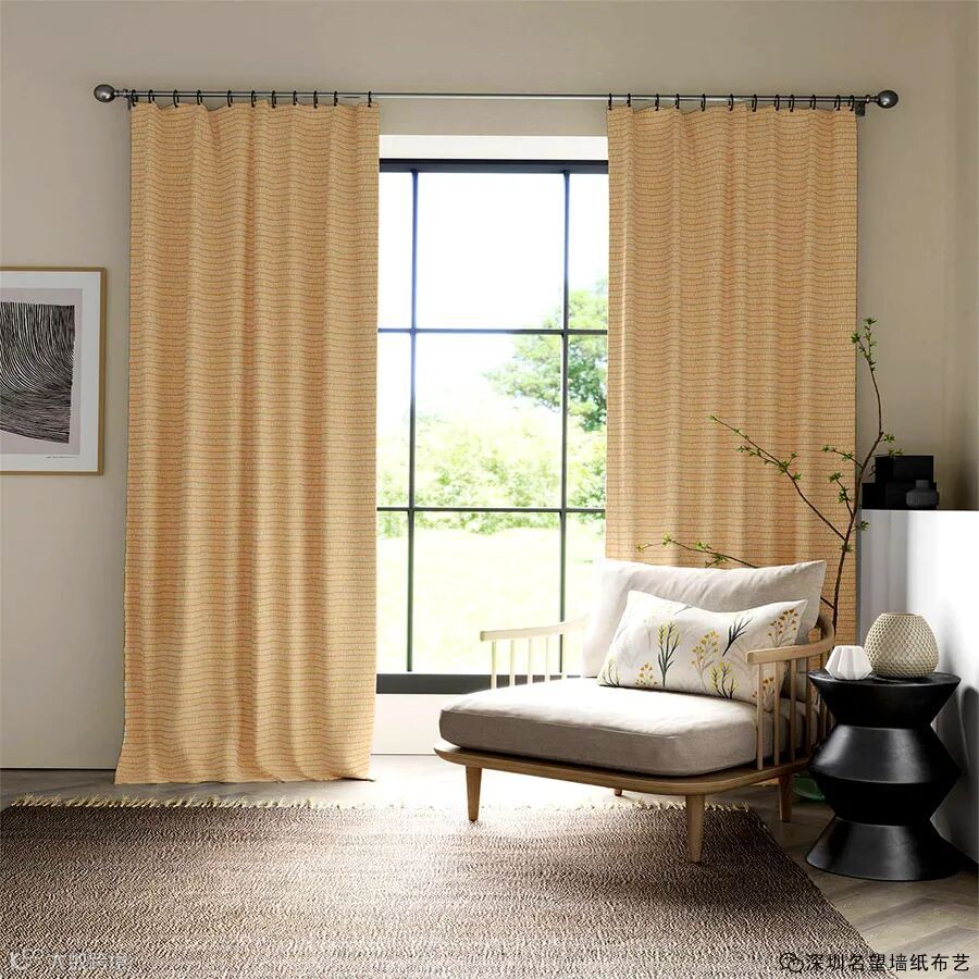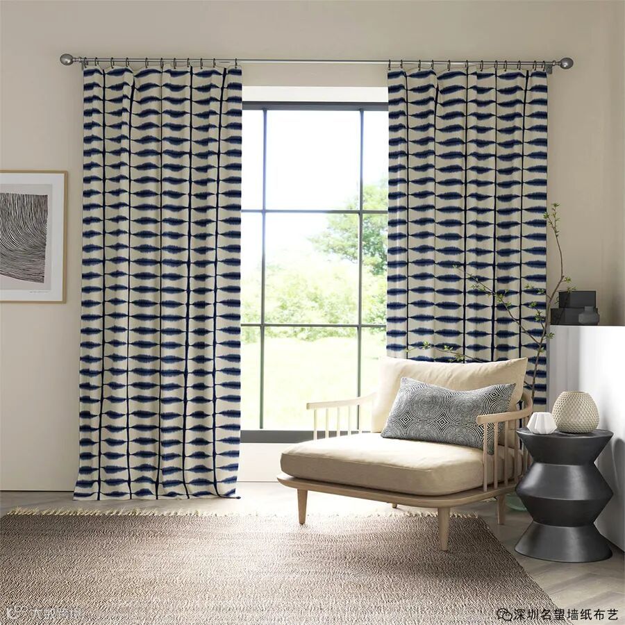 一种简单的V形织物,边缘有纹理,100%纯棉,采用现代色彩印制,并配有相配的壁纸。适用于室内装潢工程,或百叶窗,靠垫和窗帘。